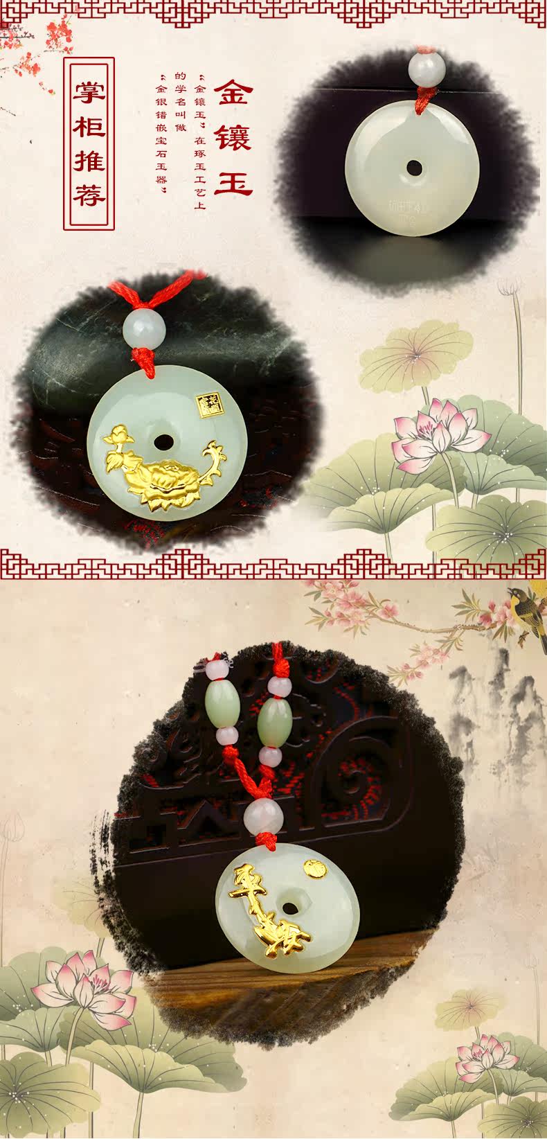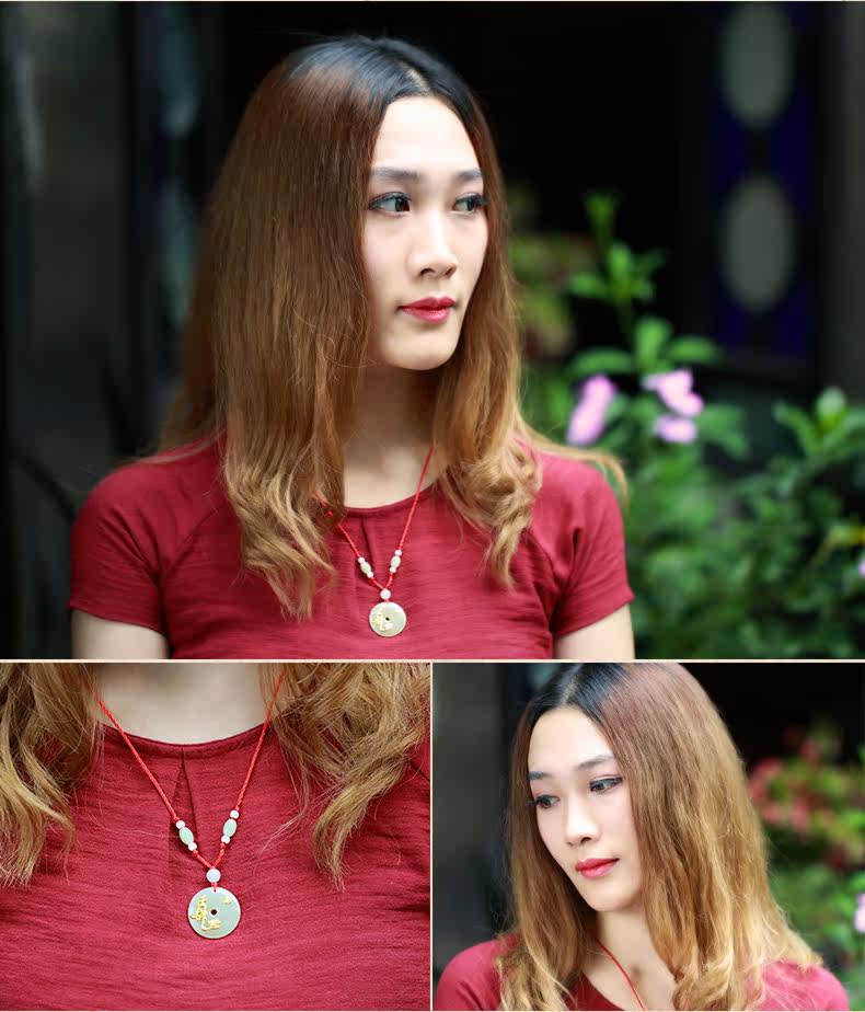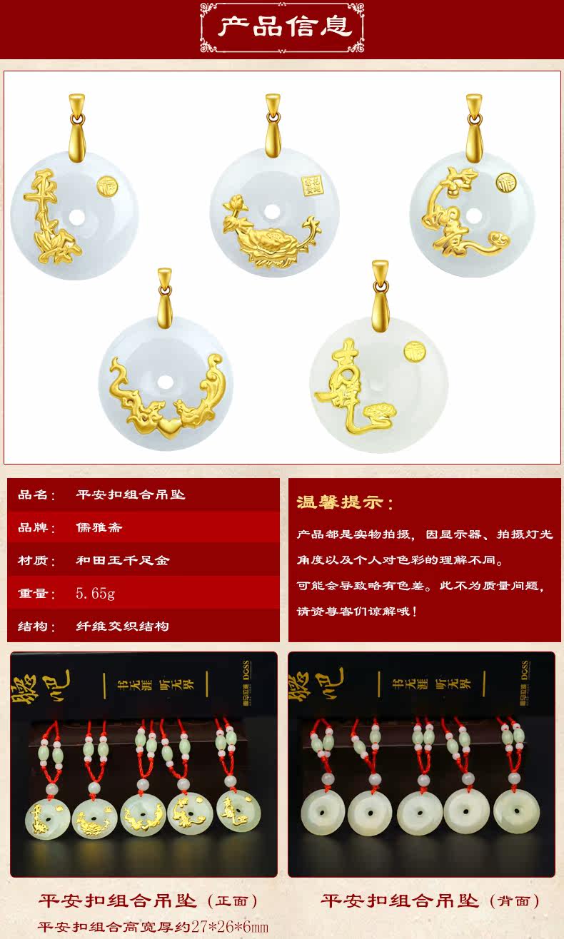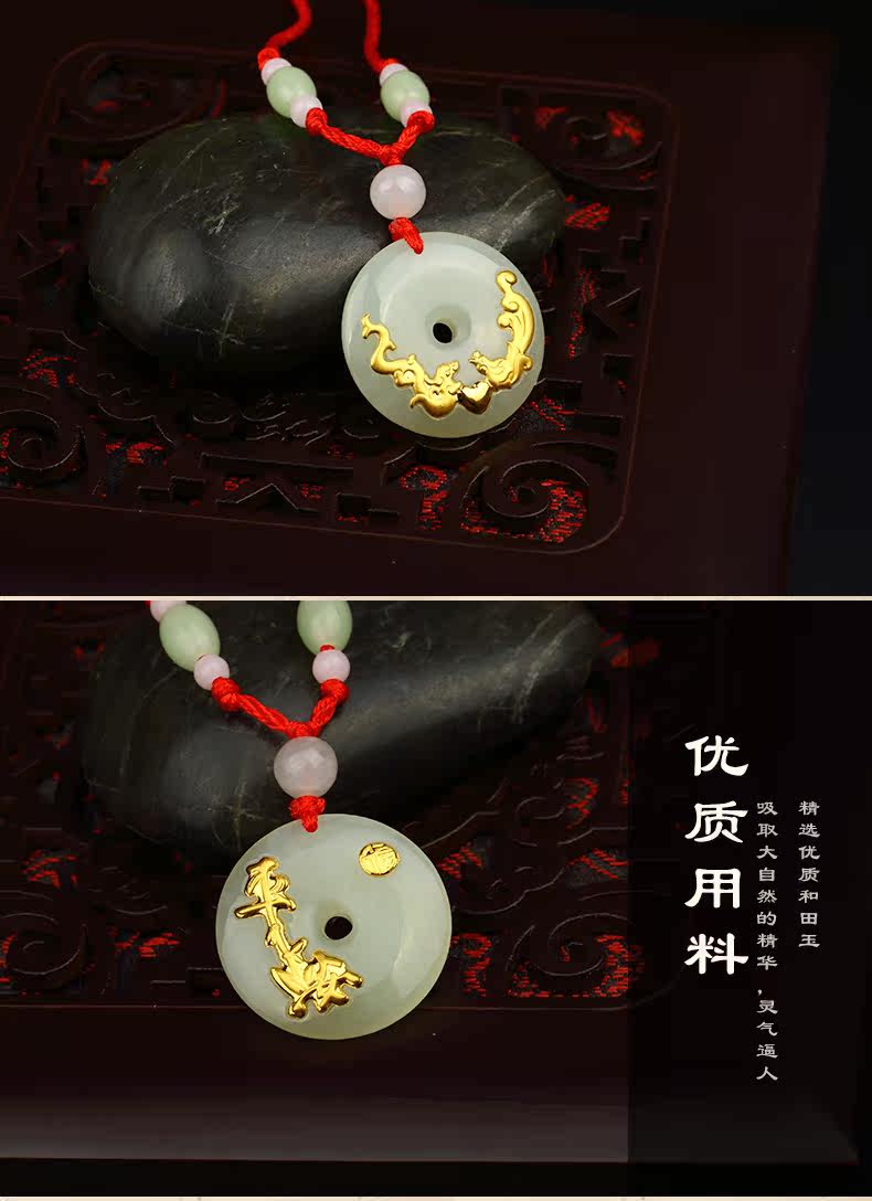 儒雅斋 Защитный амулет из нефрита, пряжка, золотая подвеска подходит для мужчин и женщин, женский стиль