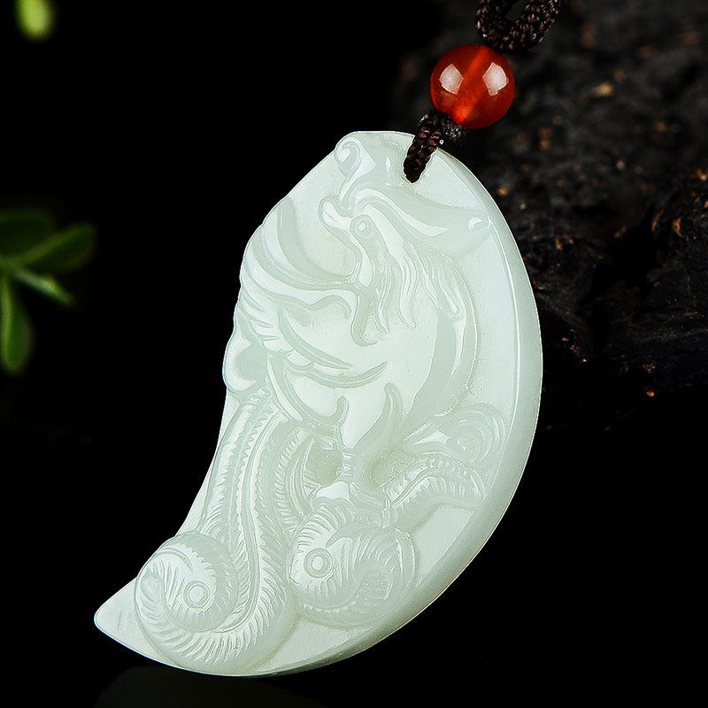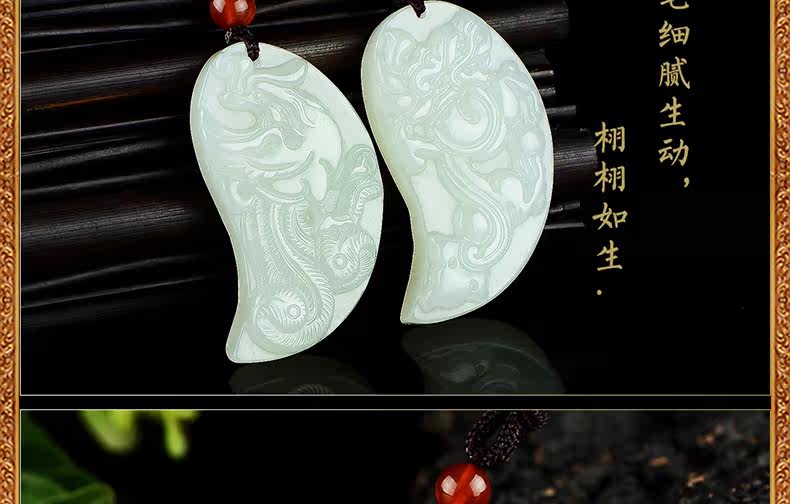 Натуральное украшение в форме дракона из округа Хотан из белого нефрита, подвеска для влюбленных, дракон и феникс