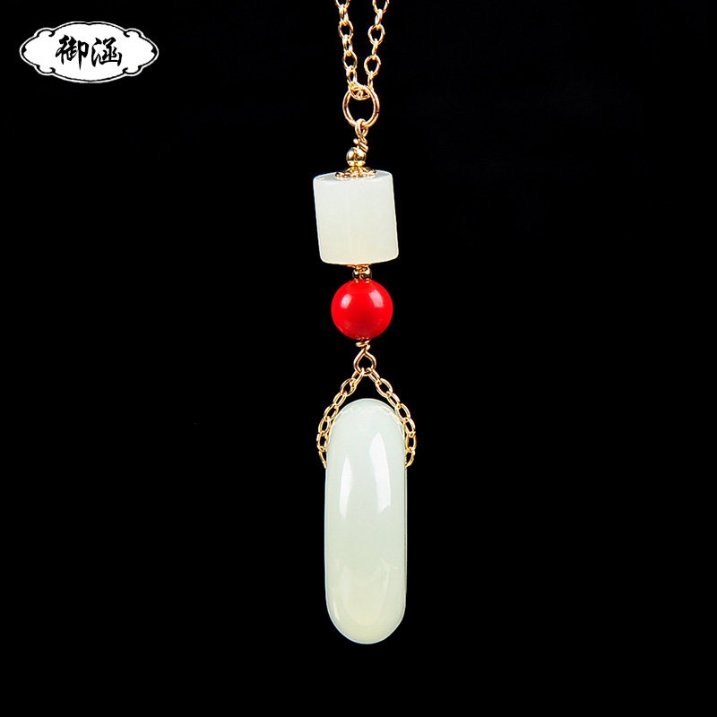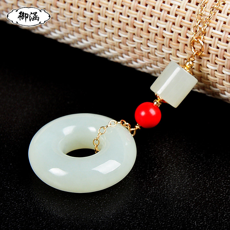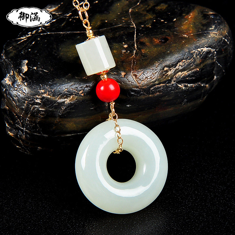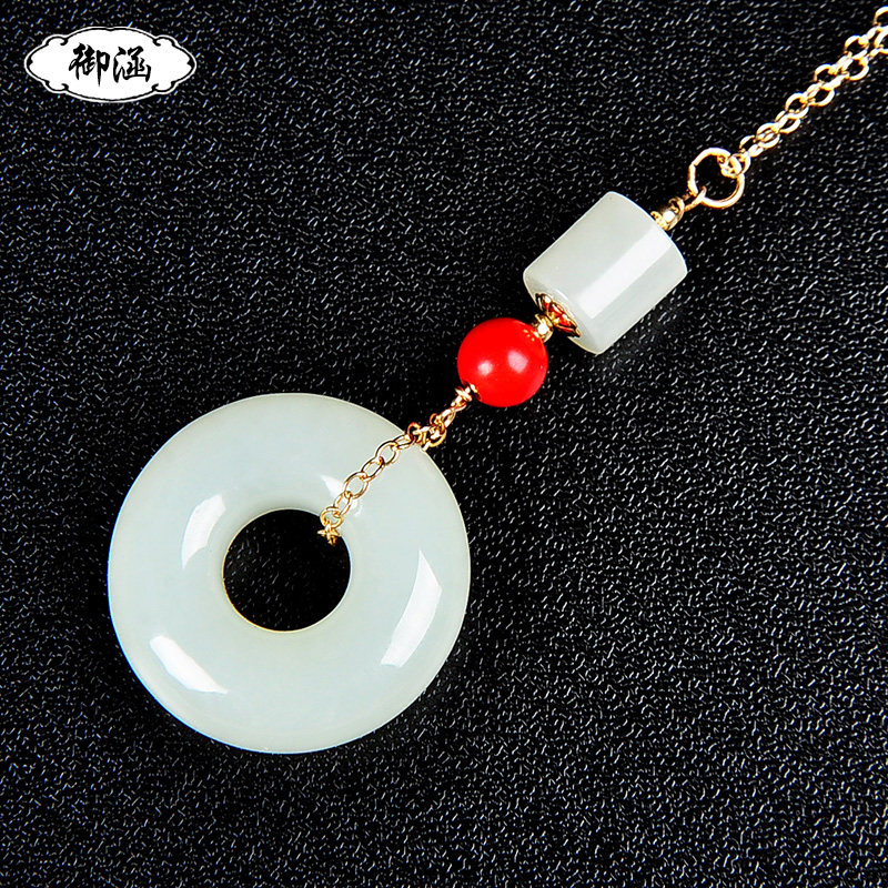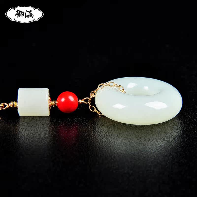 御涵 Защитный амулет, пряжка, подвеска из белого нефрита, 14 карат, женский стиль