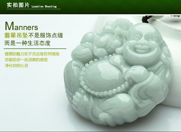Подвеска, мужской Будда, изумрудная природная руда из нефрита, реплика, большое ожерелье