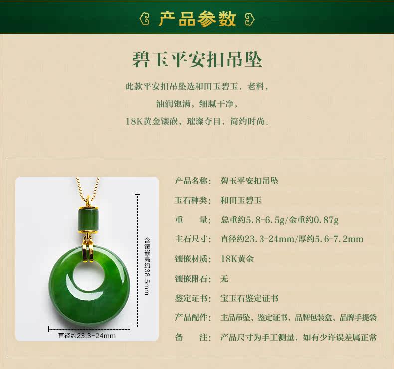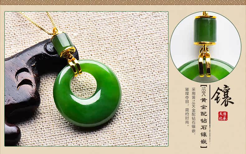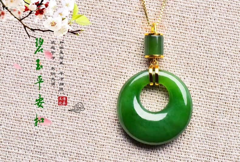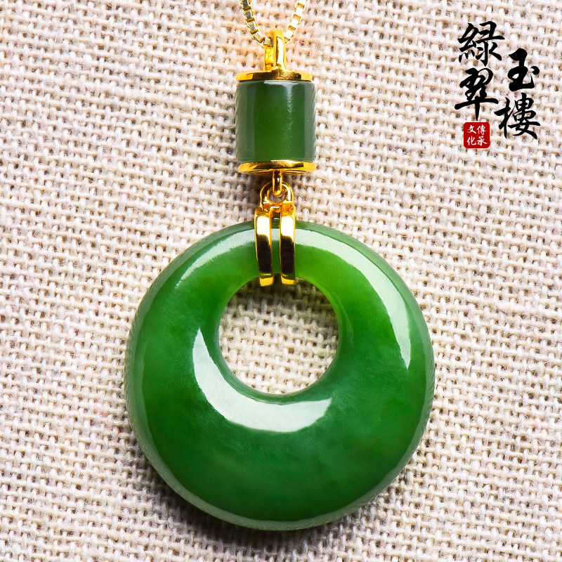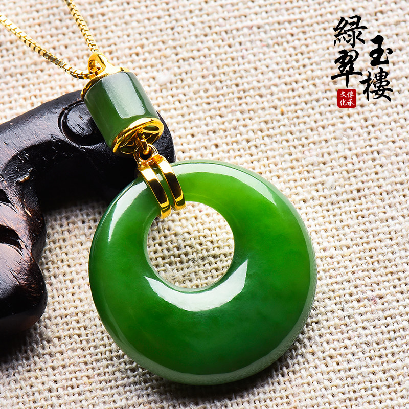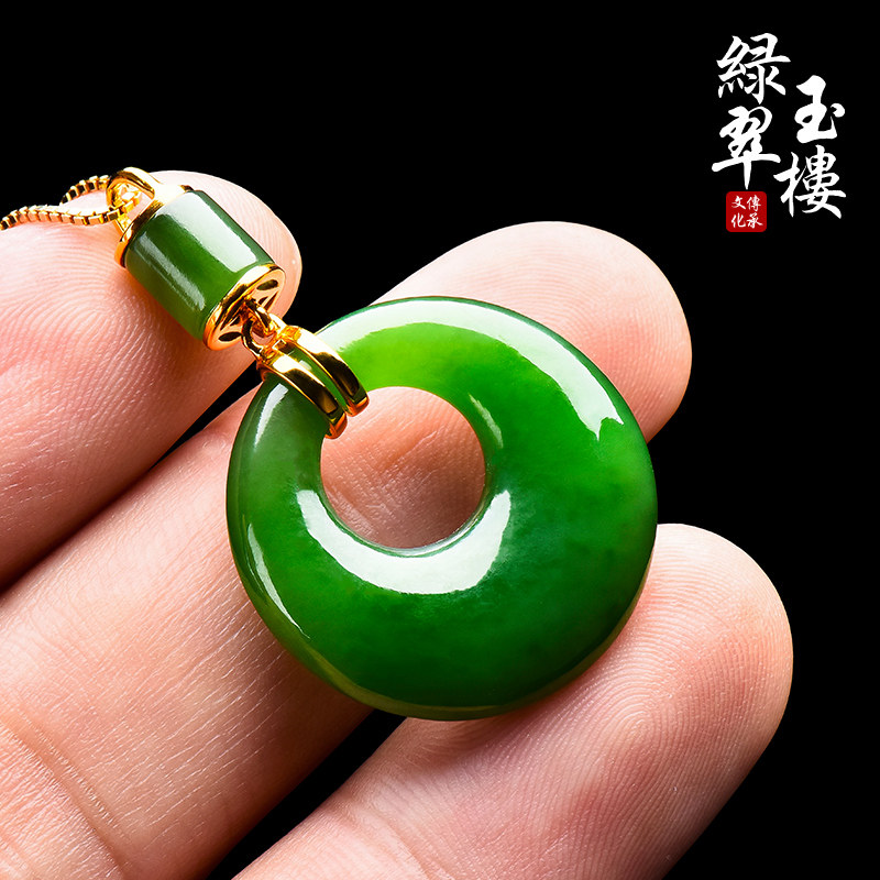 绿翠玉楼 Натуральная яшма из нефрита, защитный амулет, пряжка, подвеска, ожерелье, реплика, золото 18 карат