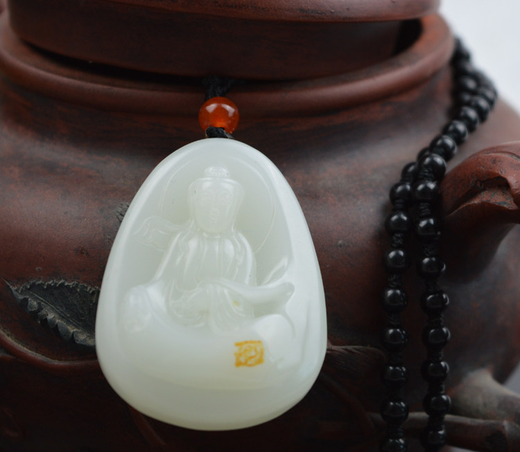 Чай Тегуаньинь из нефрита, подвеска, полированный камень из белого нефрита, мужской стиль