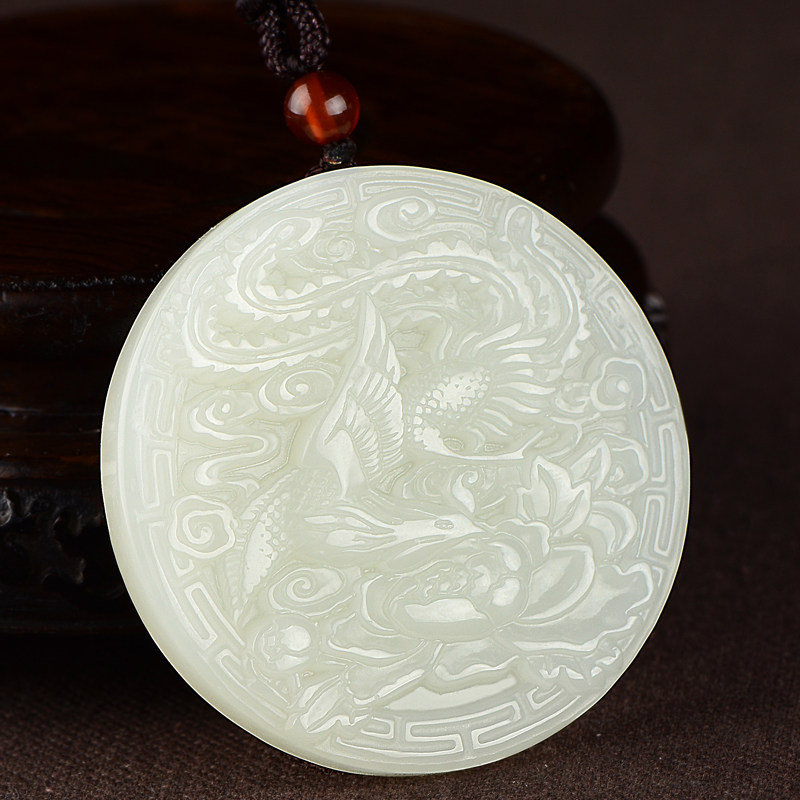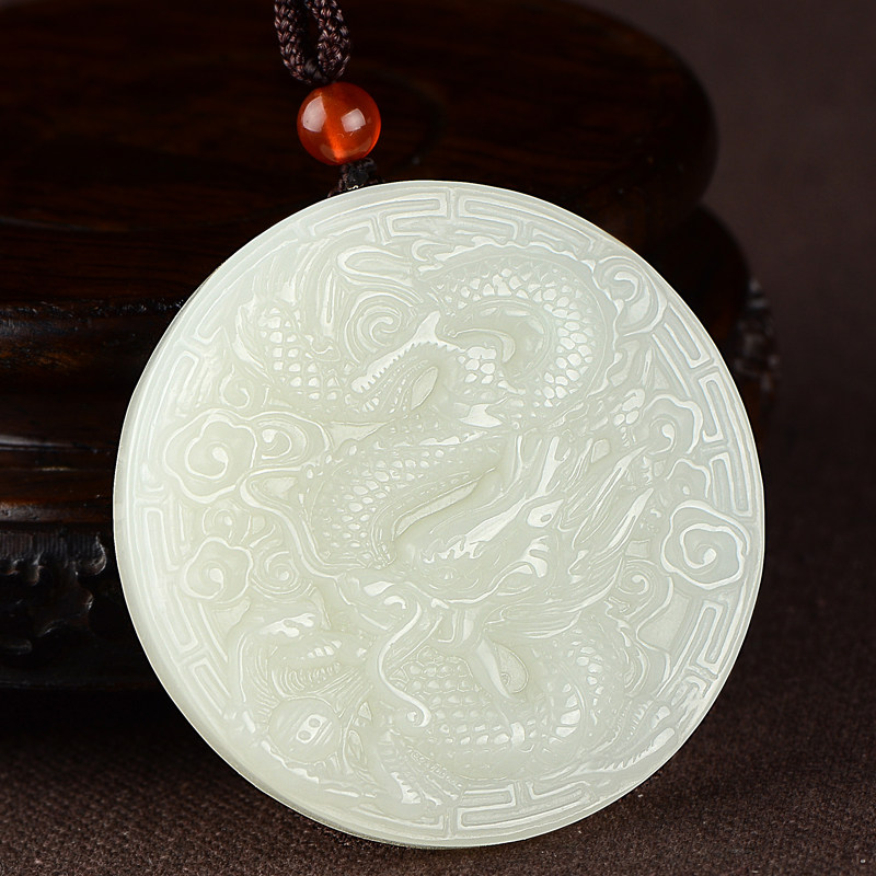 Натуральное украшение в форме дракона из нефрита, подвеска, ожерелье для влюбленных подходит для мужчин и женщин, дракон и феникс