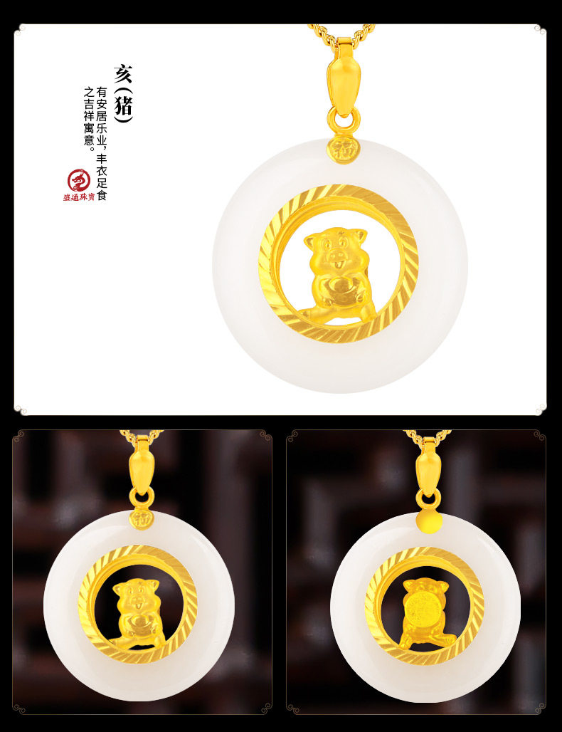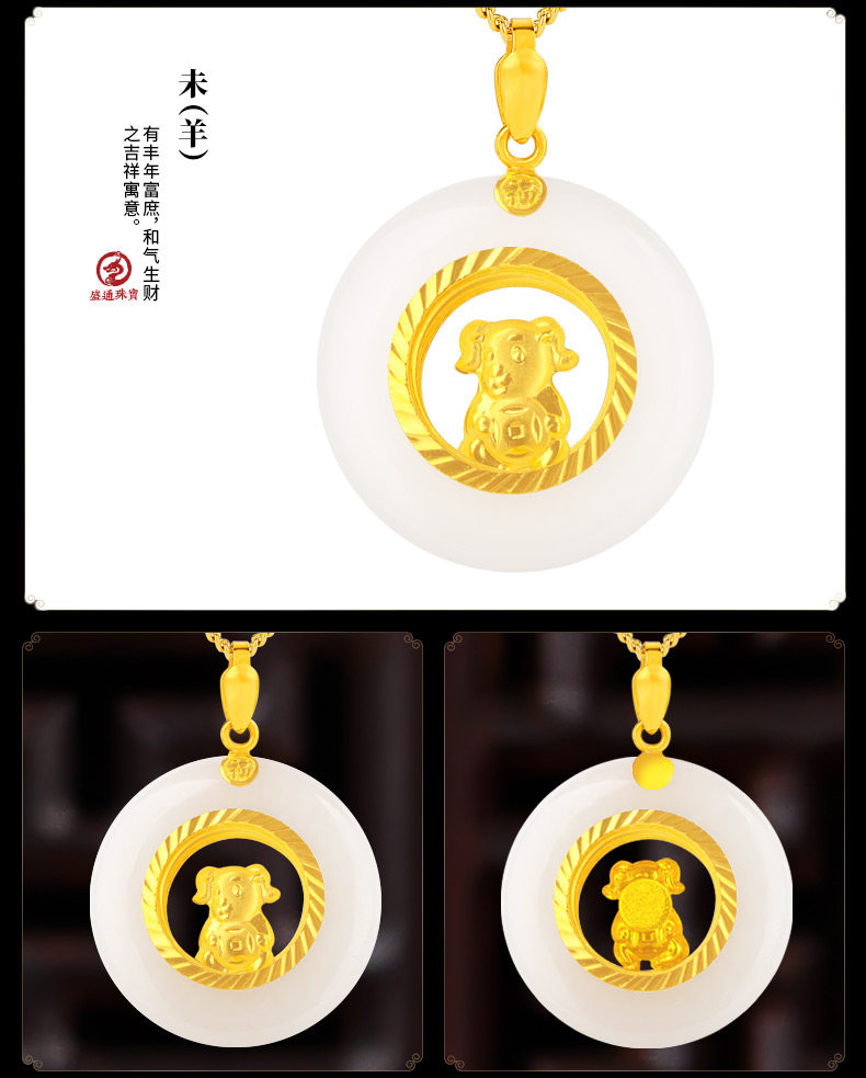 盛通珠宝 Природная руда из нефрита, подвеска подходит для мужчин и женщин из белого нефрита, китайский гороскоп, женский стиль