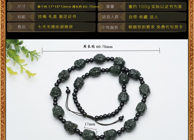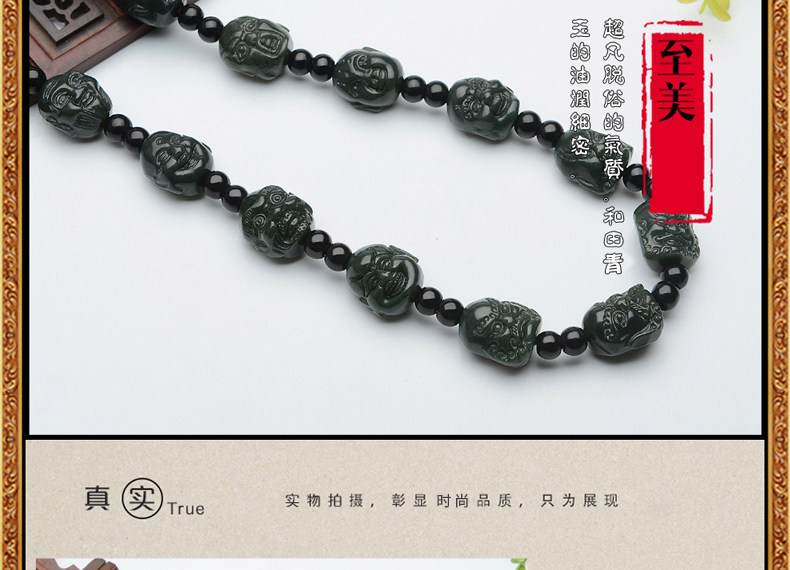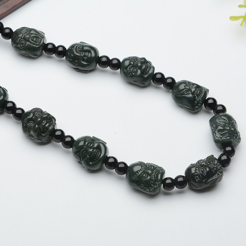 Натуральное ожерелье из нефрита, цепочка, ремешок, Будда, четки из круглых бусин