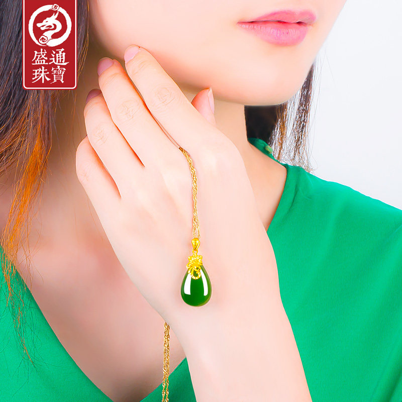 Натуральная подвеска из нефрита, золотая яшма, инкрустация камня, женский стиль