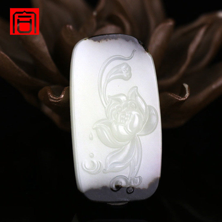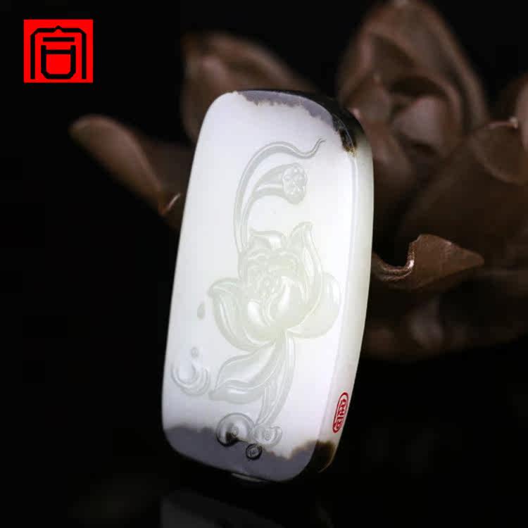 诚合 Ювелирные изделия редкие два цвета Синьцзян Хетиан нефритовое черное кожаное подвесное подвесное кулонное цветок цветут богатые и богатые магазины знаменитые произведения