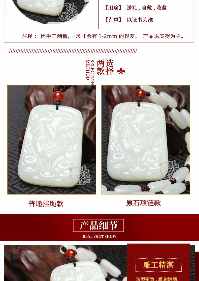 锦玉涵珠宝 Подвеска из нефрита подходит для мужчин и женщин для влюбленных, китайский гороскоп