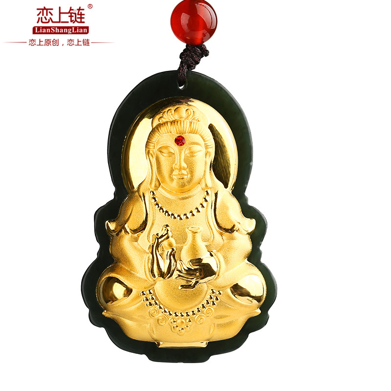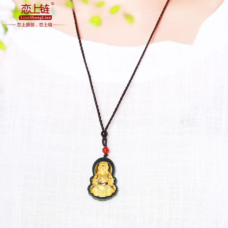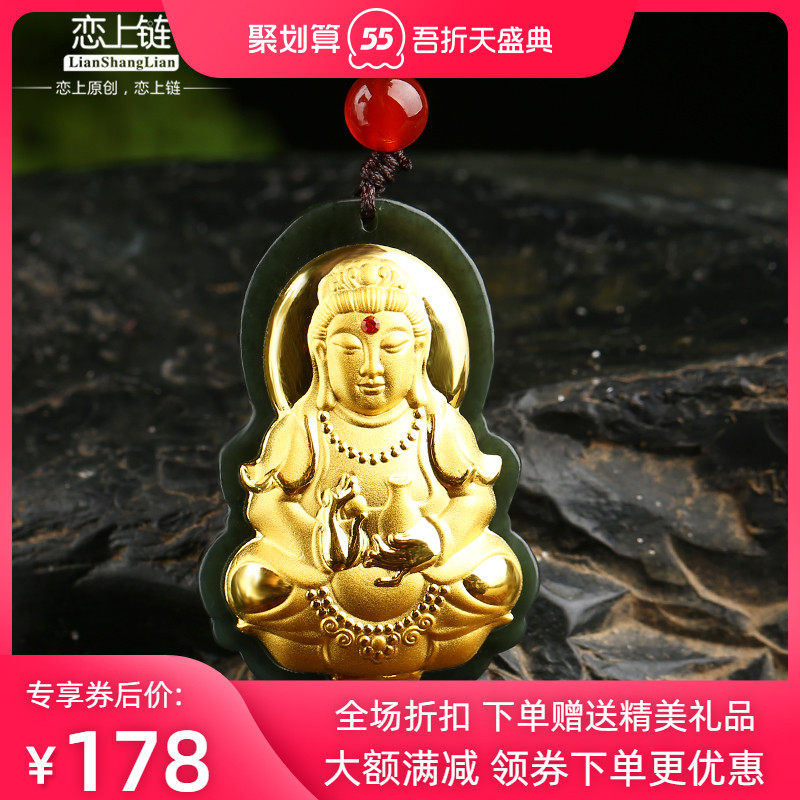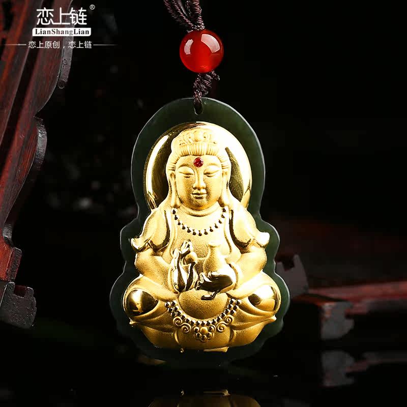恋上链 Натуральный чай Тегуаньинь из округа Хотан из нефрита подходит для мужчин и женщин, золотая подвеска, женский стиль