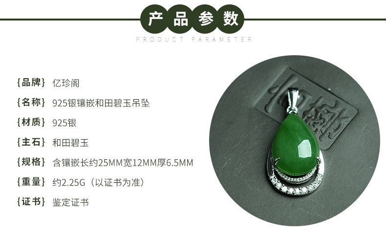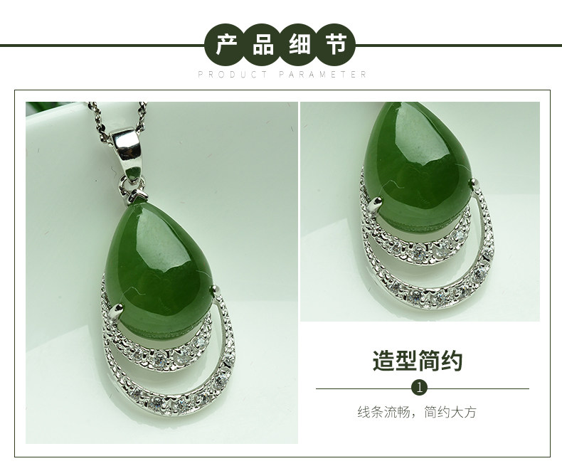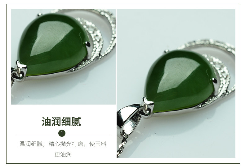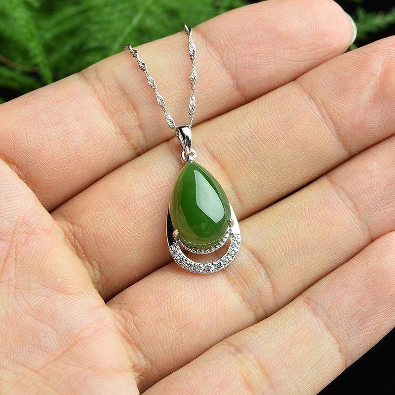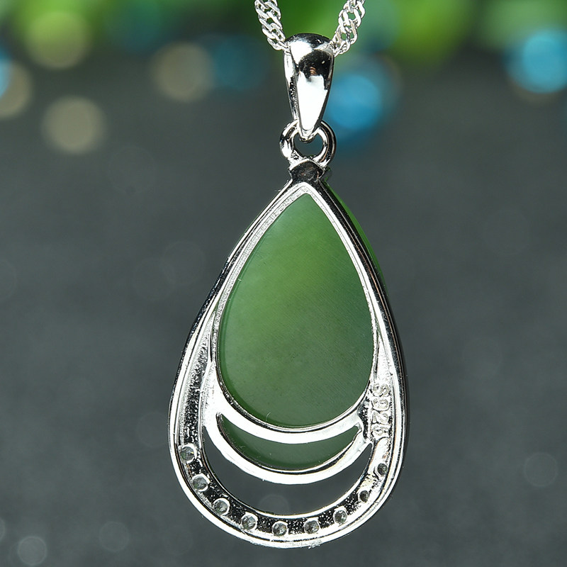 亿珍阁 Подвеска из нефрита, яшма в форме капли, серебро 925 пробы