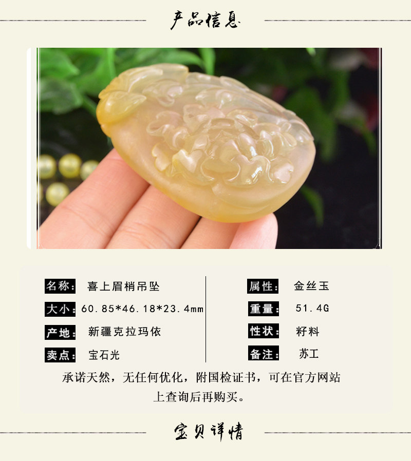 Yu Nu/Xinjiang Caramay Natural Golden Jade Yellow Gem Optical Sugong Пустые бровей.