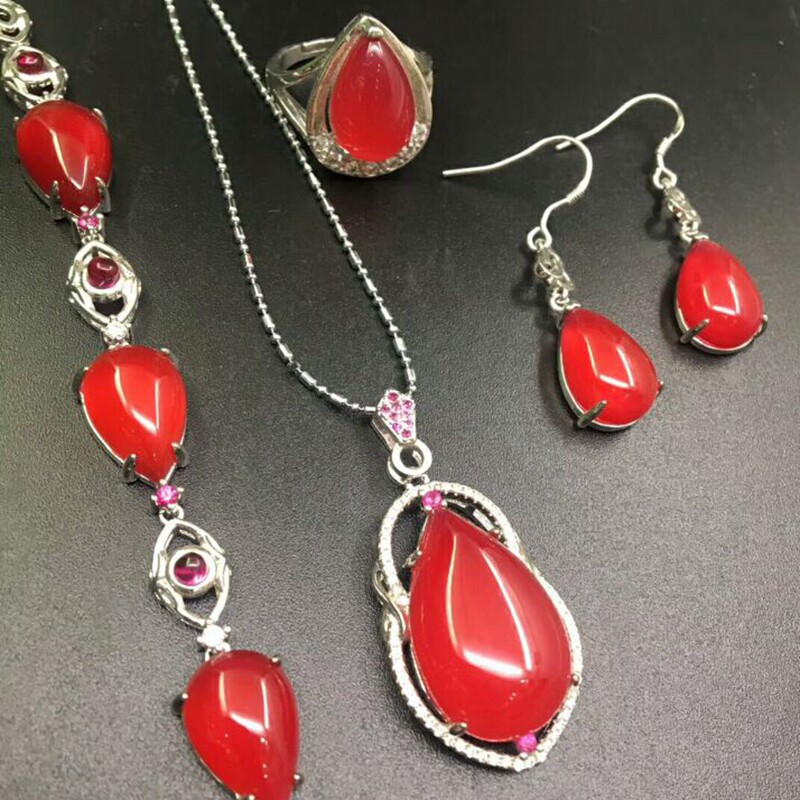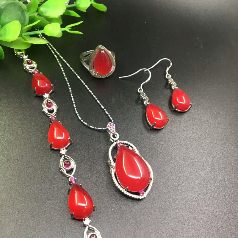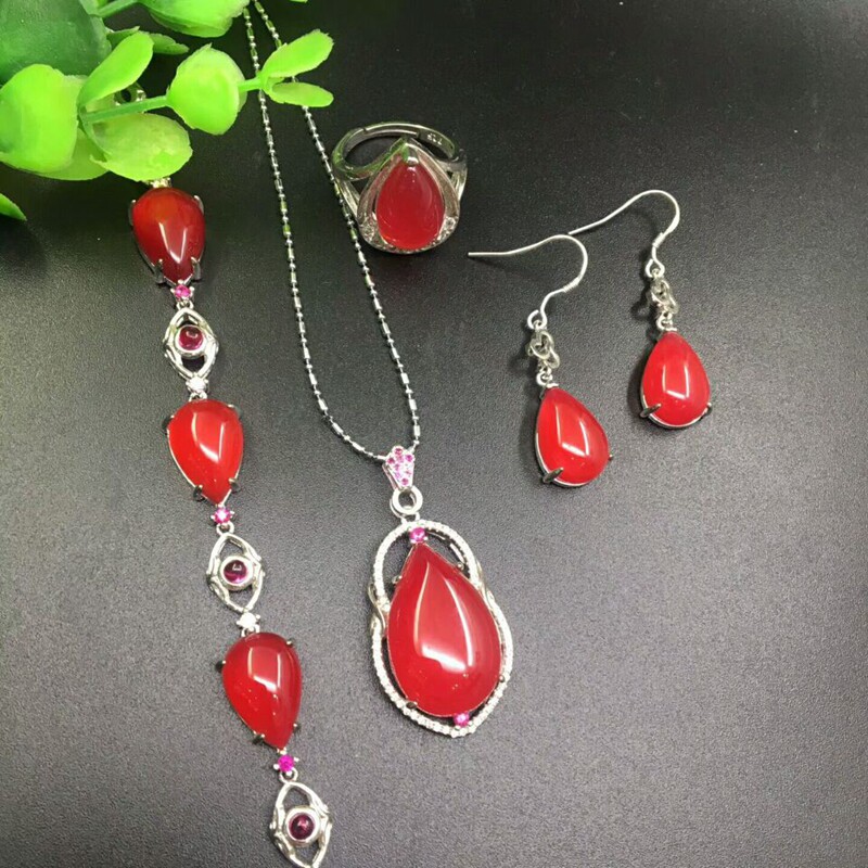 Природная руда из нефрита, комплект, кольцо, подвеска, серьги, браслет, инкрустация камня, серебро 925 пробы, 4 предмета