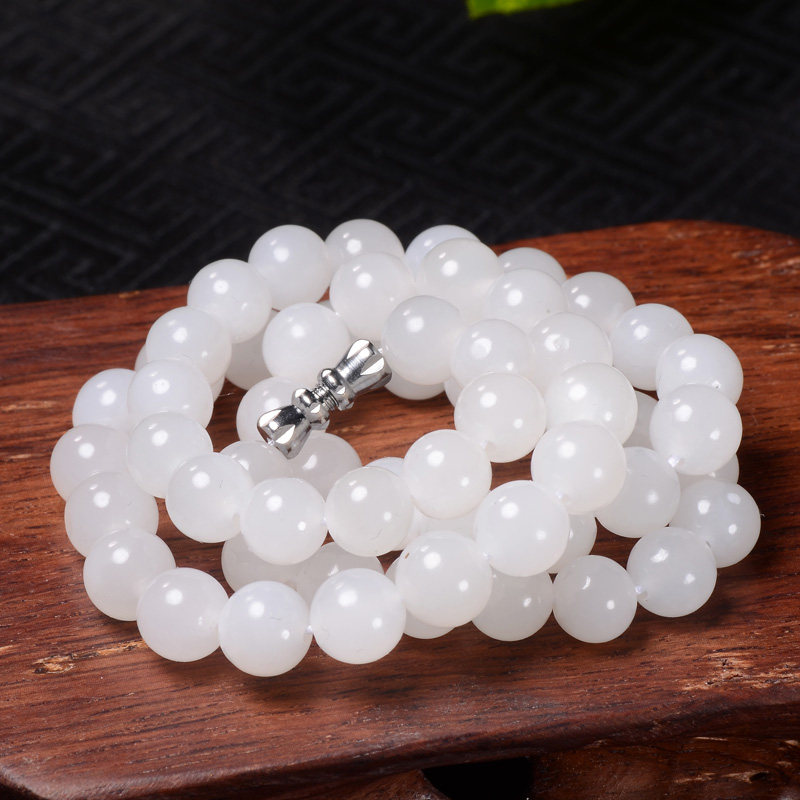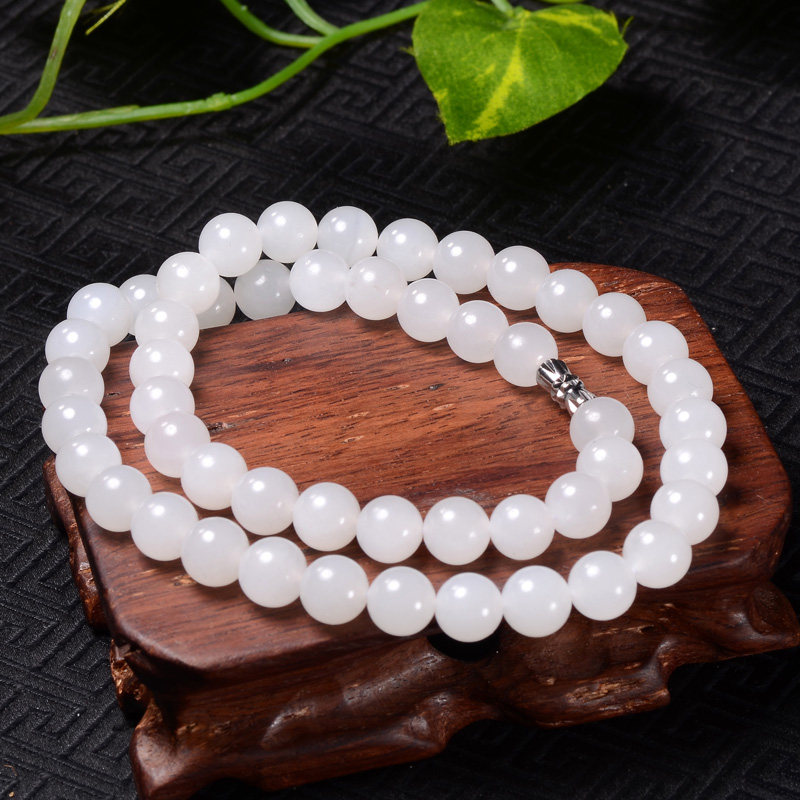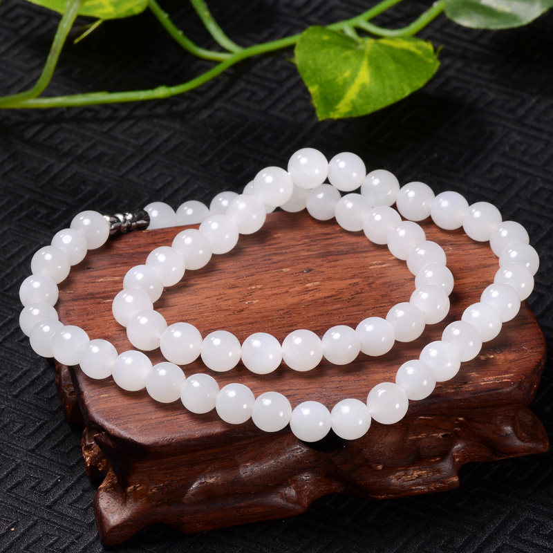 Натуральное ожерелье из белого нефрита, бусины, подвеска, женский стиль
