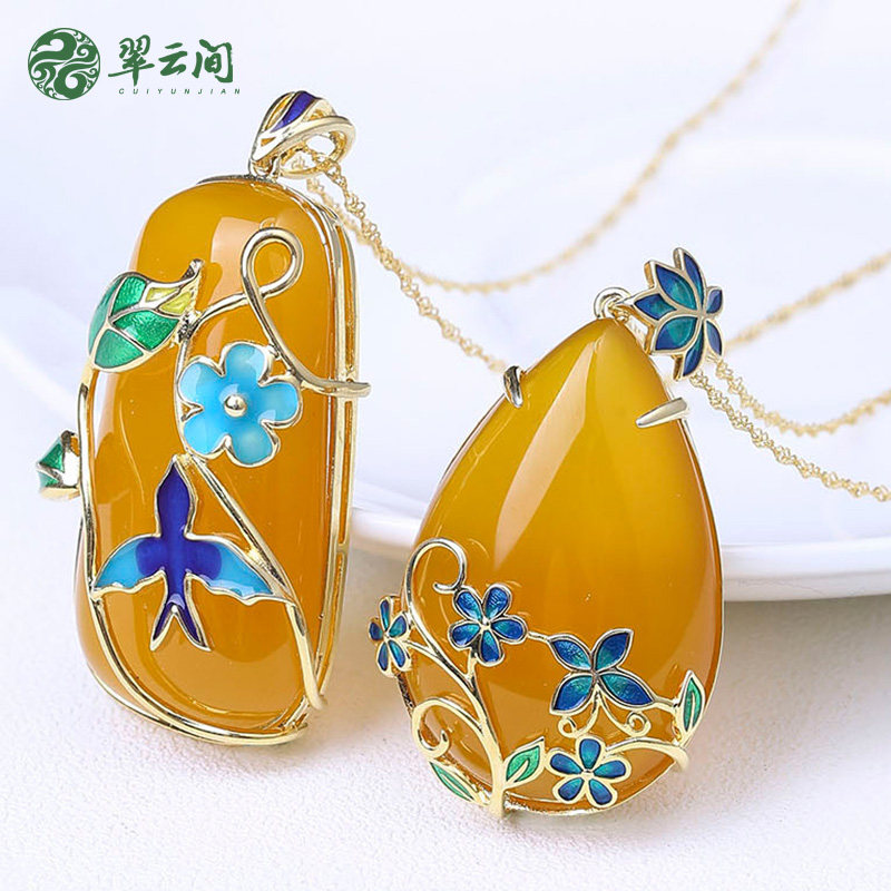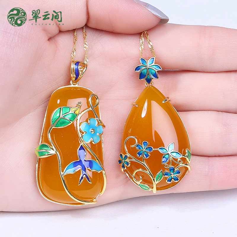 翠云间 Нефритовые ювелирные украшения с горящим горьким голубым агатом желтым халседоном выпадают подвеска свиней два (сертификат)