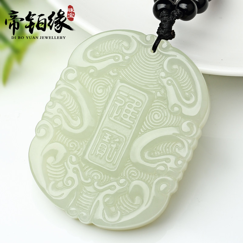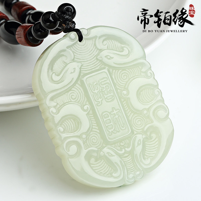 帝铂缘 Ювелирное украшение из округа Хотан, подвеска из белого нефрита, мужской стиль, на удачу
