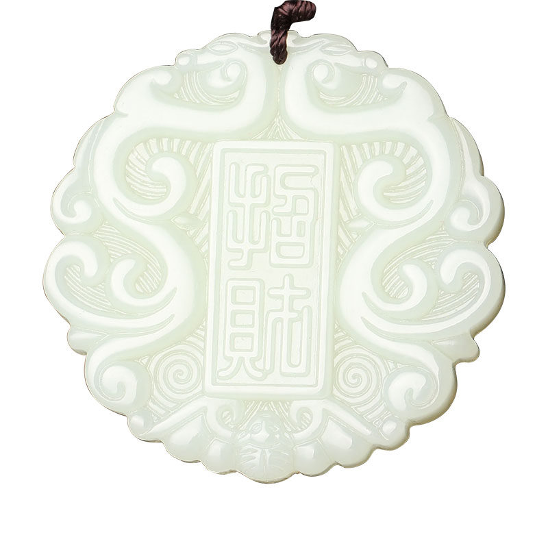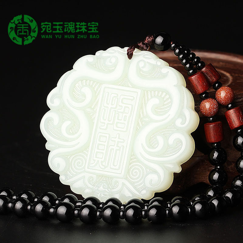 宛玉魂 Двусторонное антикварное ожерелье из белого нефрита, мужской стиль, дракон и феникс, женский стиль