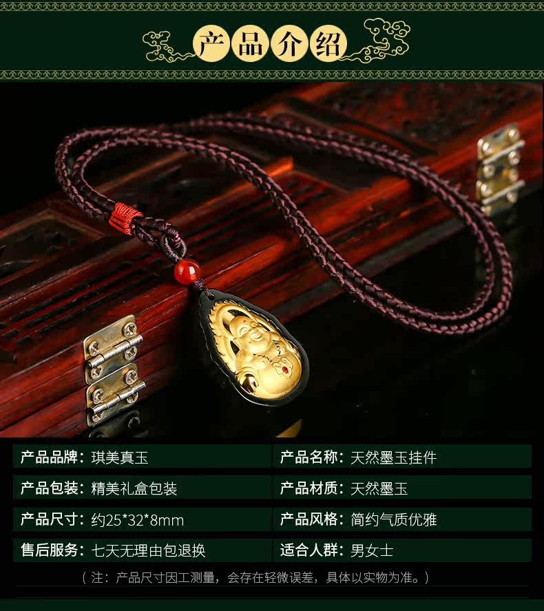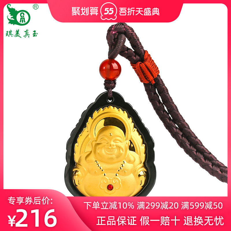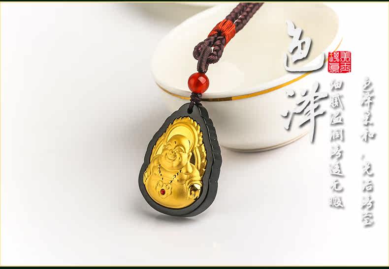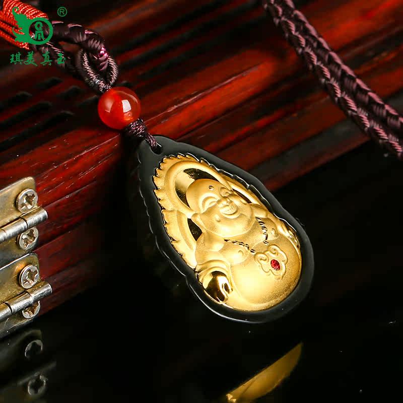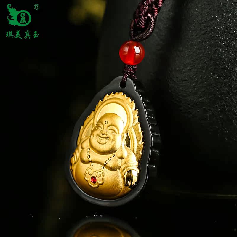 琪美真玉 Натуральный Будда из нефрита, золотая инкрустация камня, подвеска