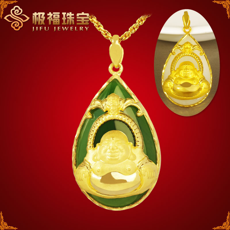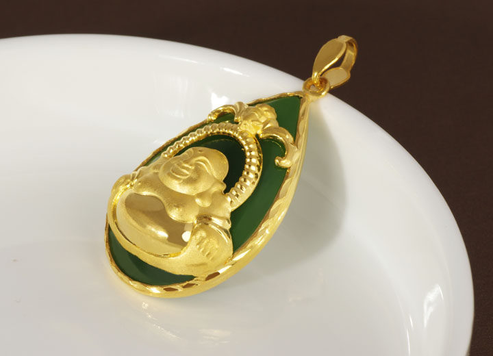 Золотая яшма из округа Хотан, Будда из белого нефрита, подвеска, женский стиль