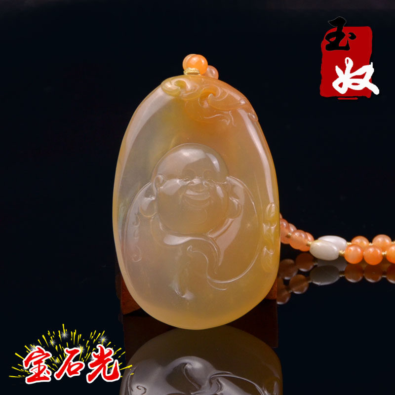 玉奴 /Xinjiang Altay Natural Gold Silk Jade Pendant/Pendant/Red и Yellow Gem Light/Laugh Buddha/Gobi Jade