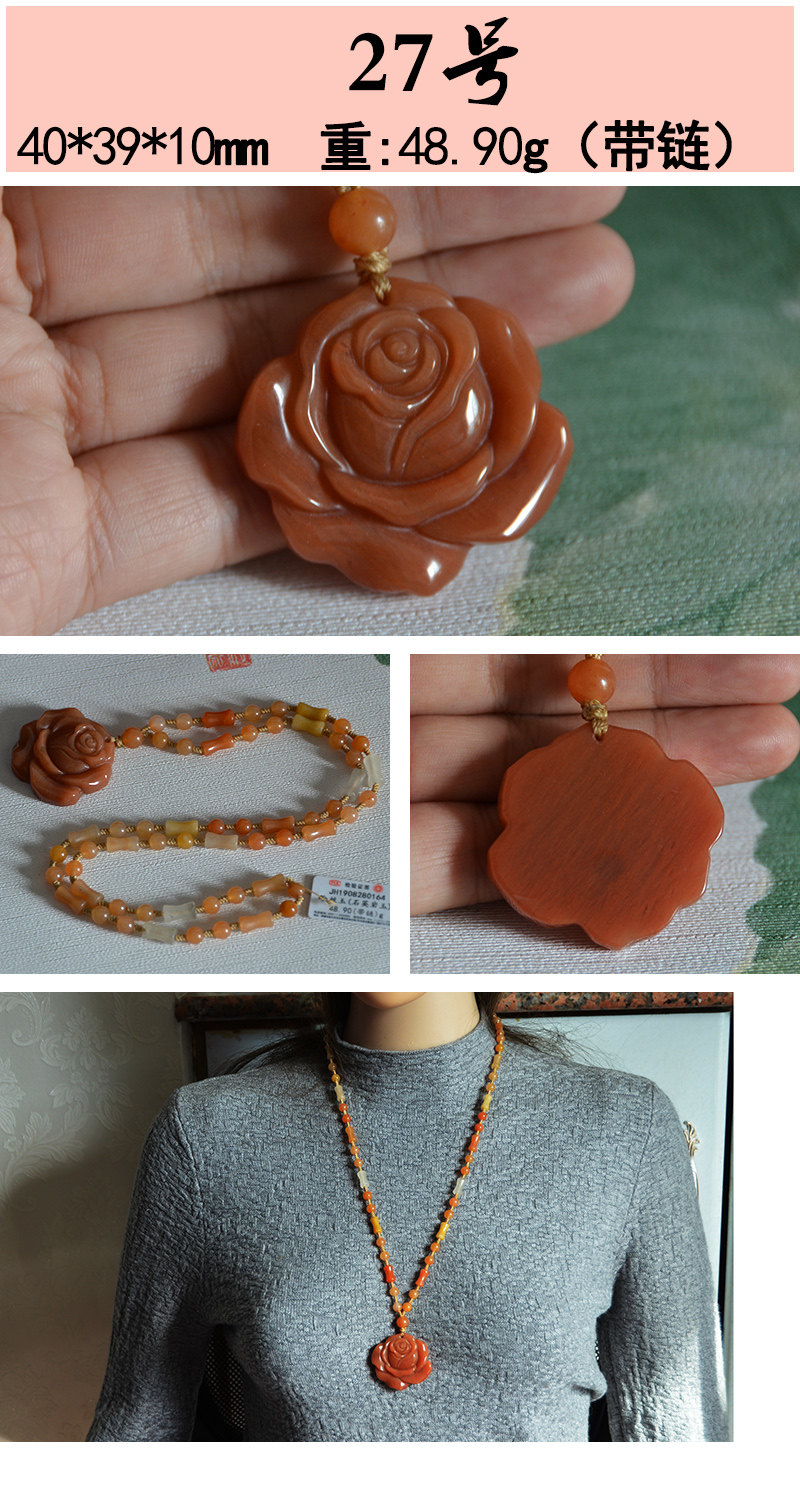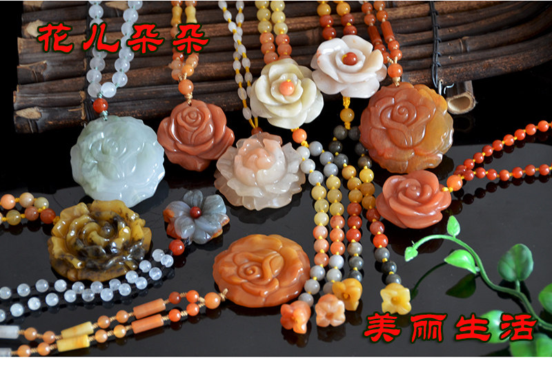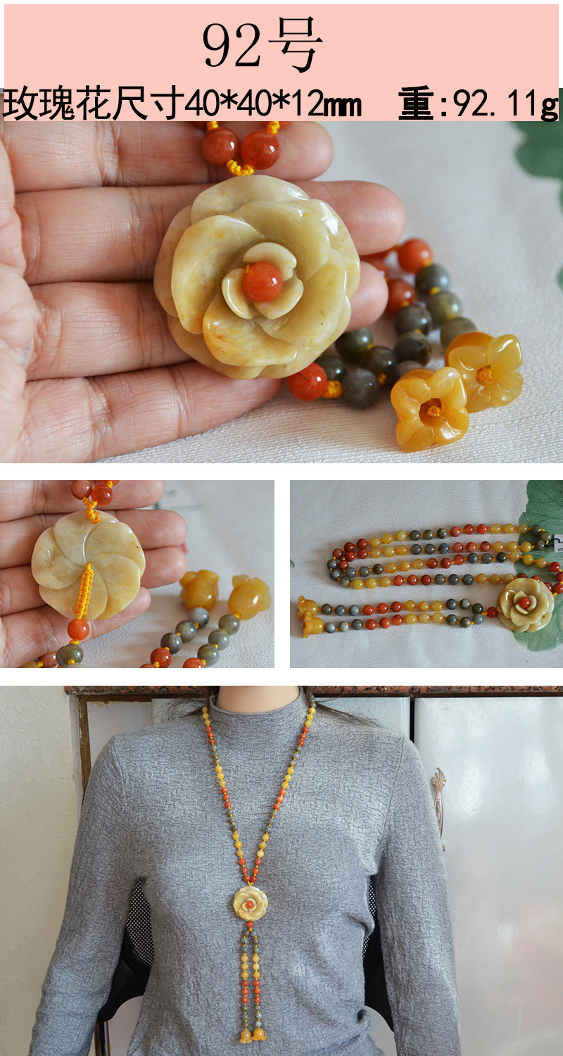 玉奴 /Xinjiang Natural Golden Silk Jade/Red и Yellow Gemstone Light/Gobi Jade/Rose/Sweater Chain/Pendent