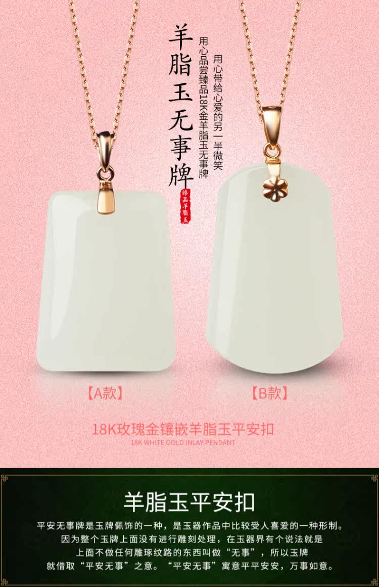 帝铂缘 Ювелирное украшение, золотая подвеска, защитный амулет из нефрита, ожерелье, 18 карат, розовое золото