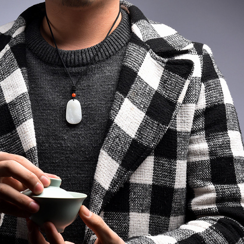 初源 Чай Тегуаньинь из нефрита, мужская подвеска, ожерелье из округа Хотан из белого нефрита