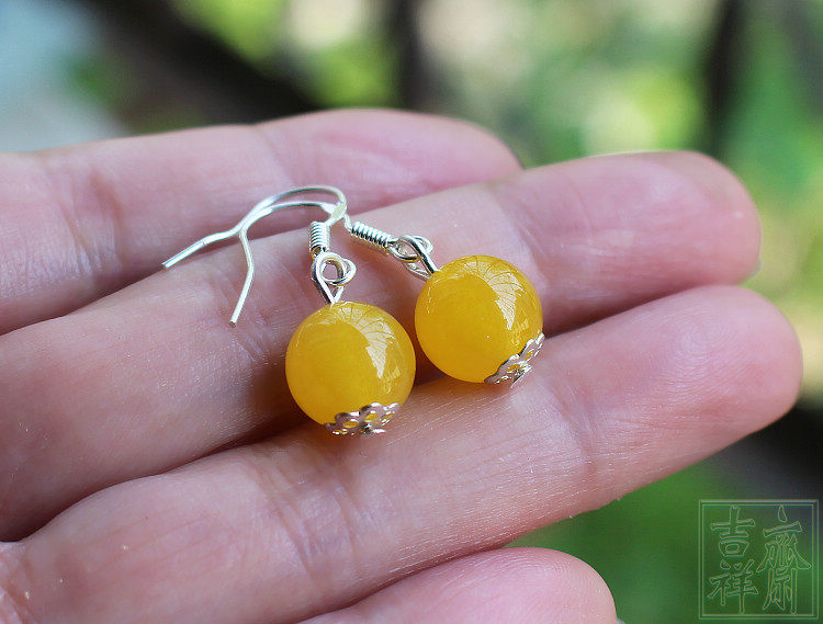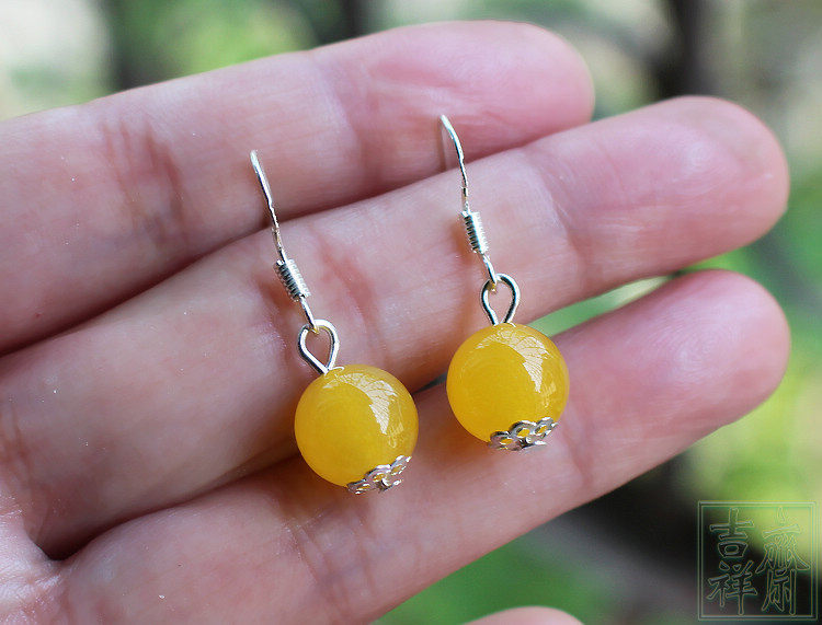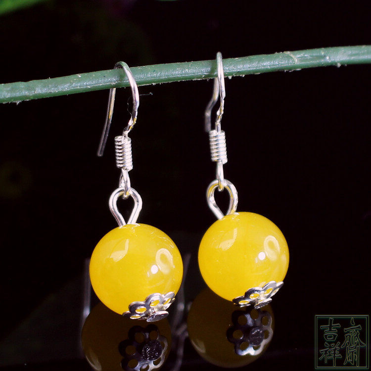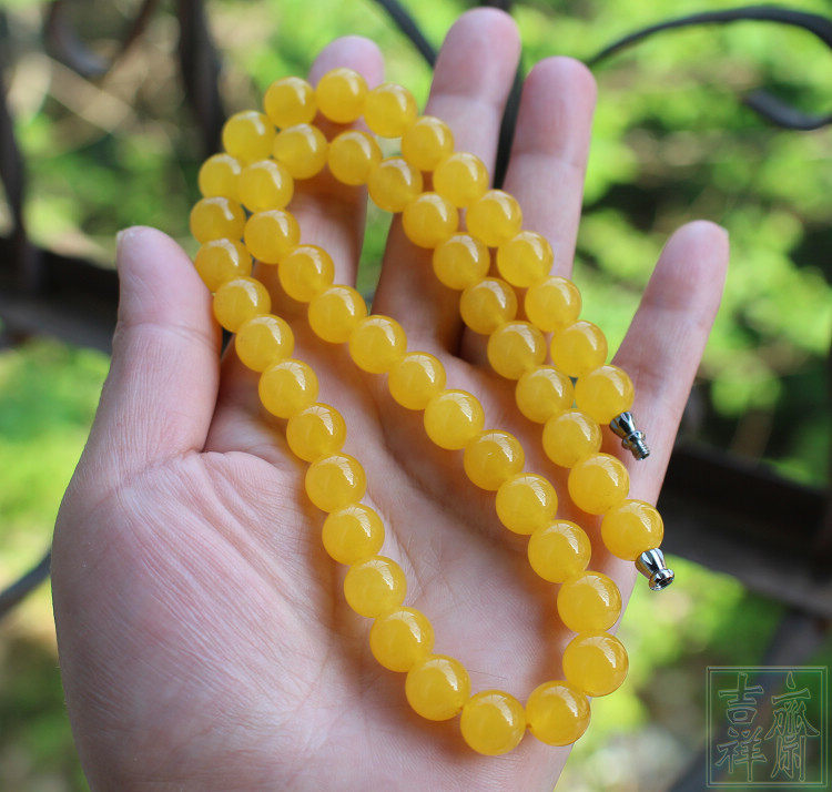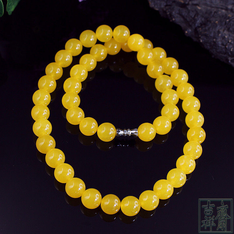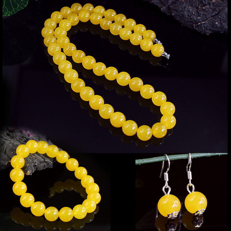 Натуральное ожерелье, серьги, комплект, желтое ювелирное украшение из нефрита, женский стиль