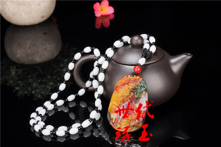 Натуральная подвеска из нефрита, золотой свитер