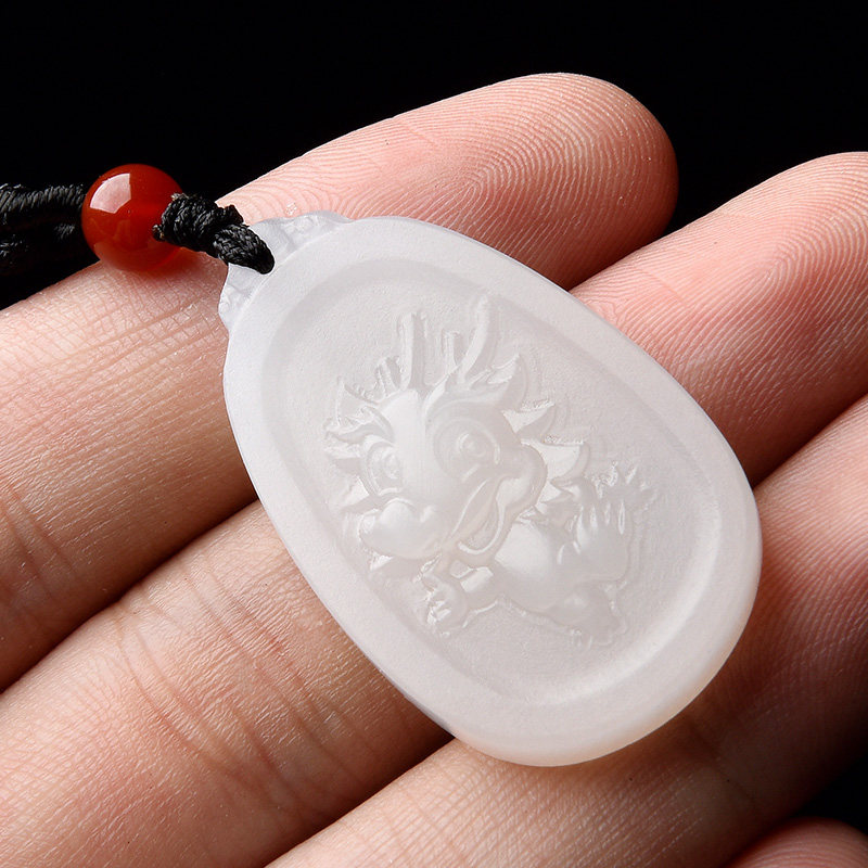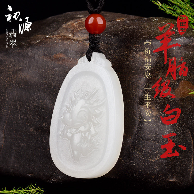 初源 Украшение в форме дракона из нефрита, детская подвеска подходит для мужчин и женщин из белого нефрита, женский стиль
