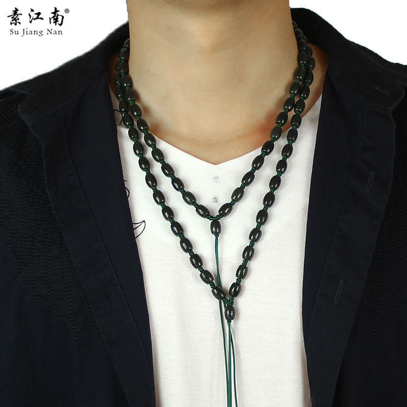 素江南 Натуральное ожерелье из нефрита подходит для мужчин и женщин, бусины, ремешок, женский стиль
