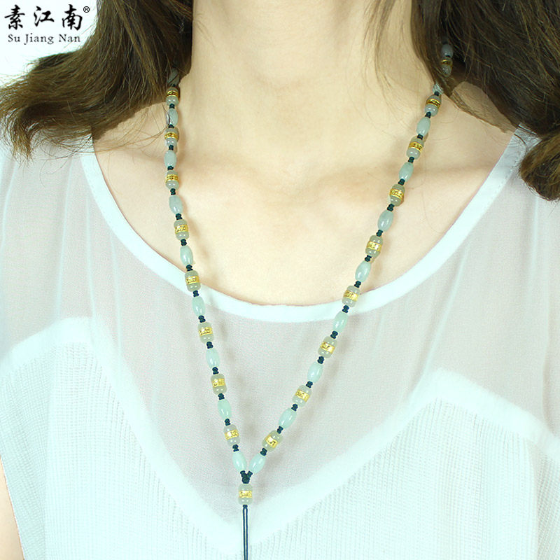 素江南 Натуральный нефрит, ожерелье, бусины, ремешок из нефрита, женский стиль