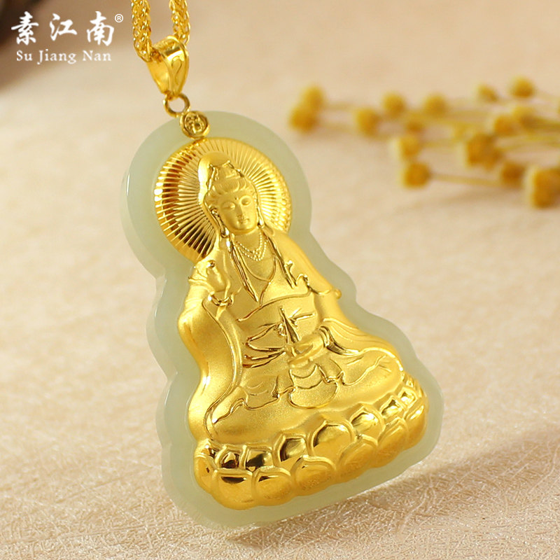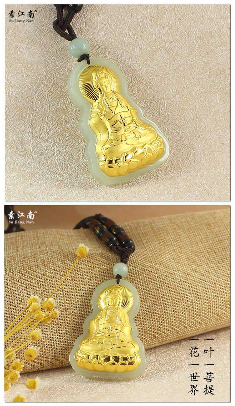 素江南 Натуральная подвеска, чай Тегуаньинь из нефрита, золотая инкрустация камня, мужской стиль