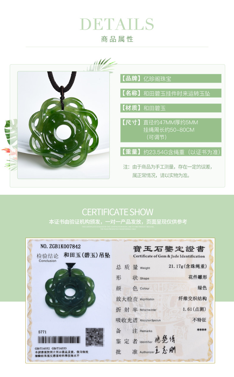 亿珍阁 Подвеска из нефрита, браслет с одной бусиной, яшма