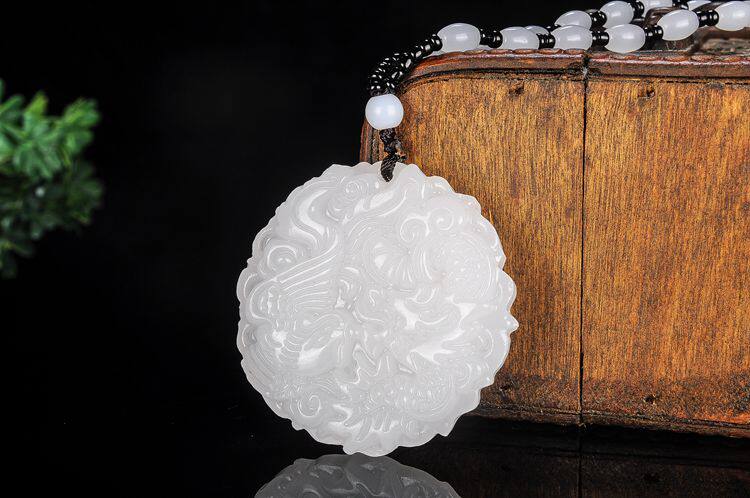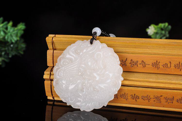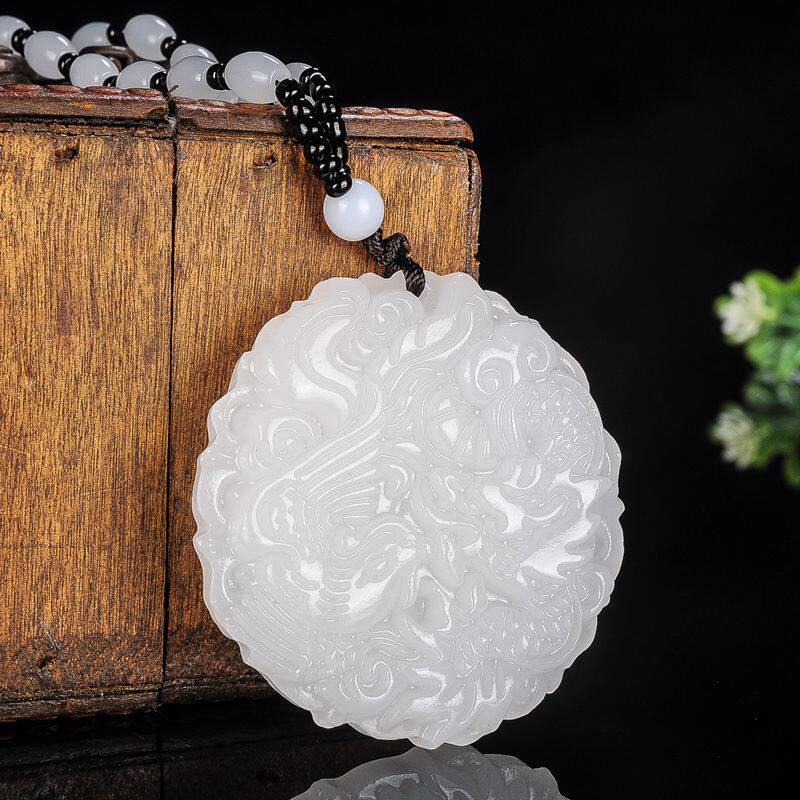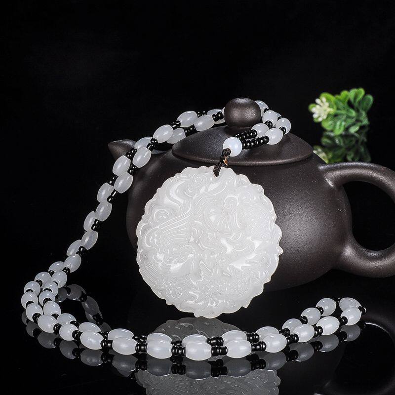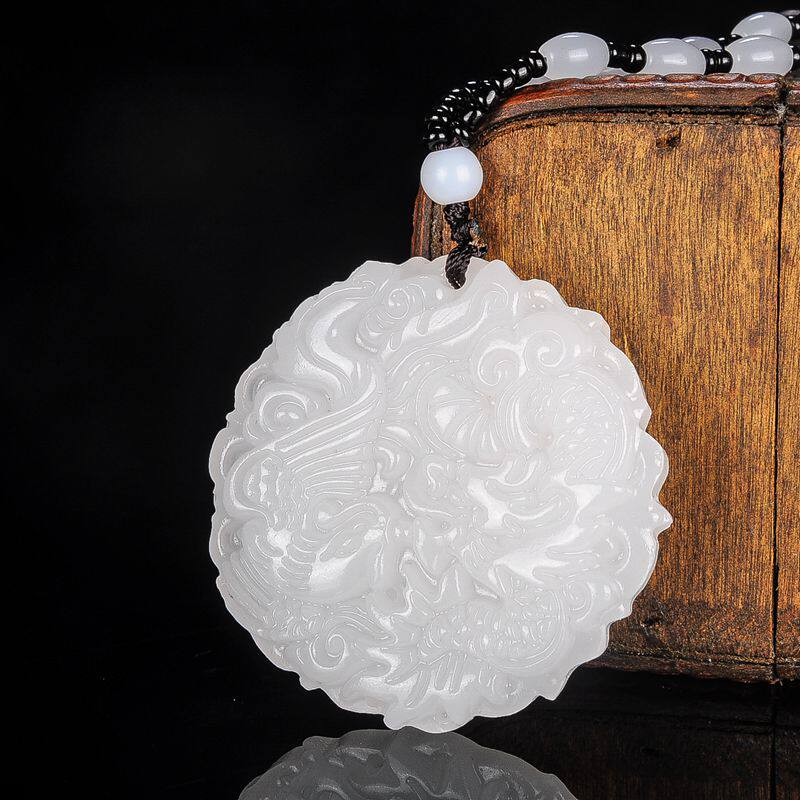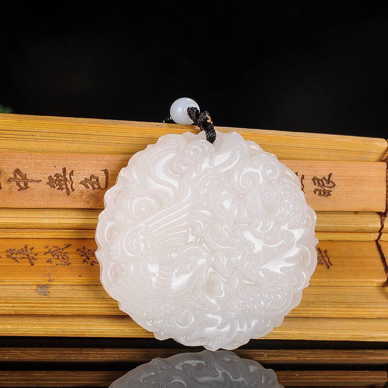 Украшение в форме дракона из нефрита, подвеска для влюбленных, ожерелье из белого нефрита, дракон и феникс