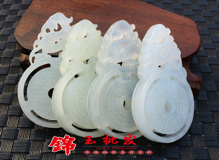Двусторонная антикварная круглая подвеска из нефрита подходит для мужчин и женщин, ханьфу, аксессуары, дракон и феникс, женский стиль, DIY