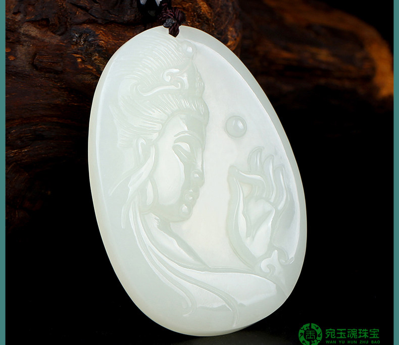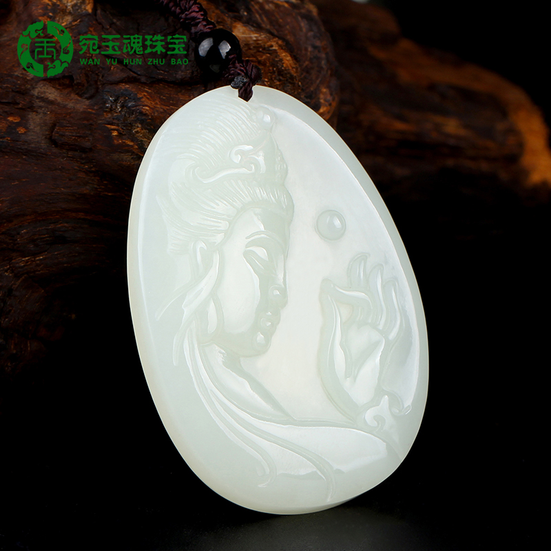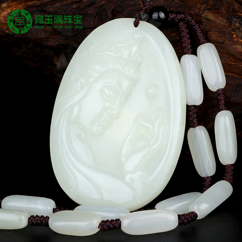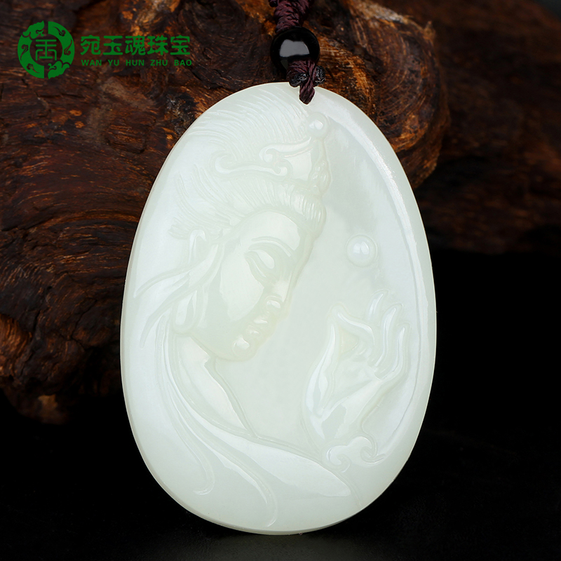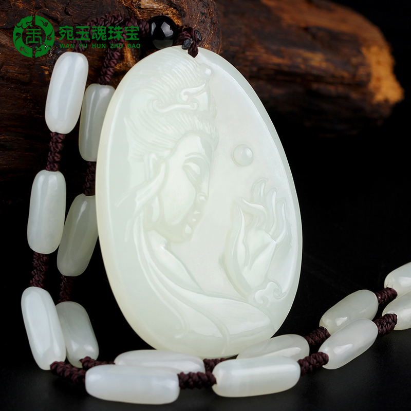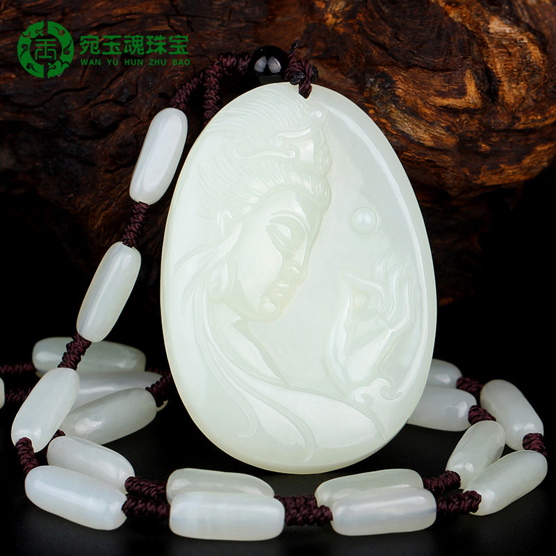 宛玉魂 Чай Тегуаньинь из нефрита, подвеска из белого нефрита, ожерелье, мужской стиль