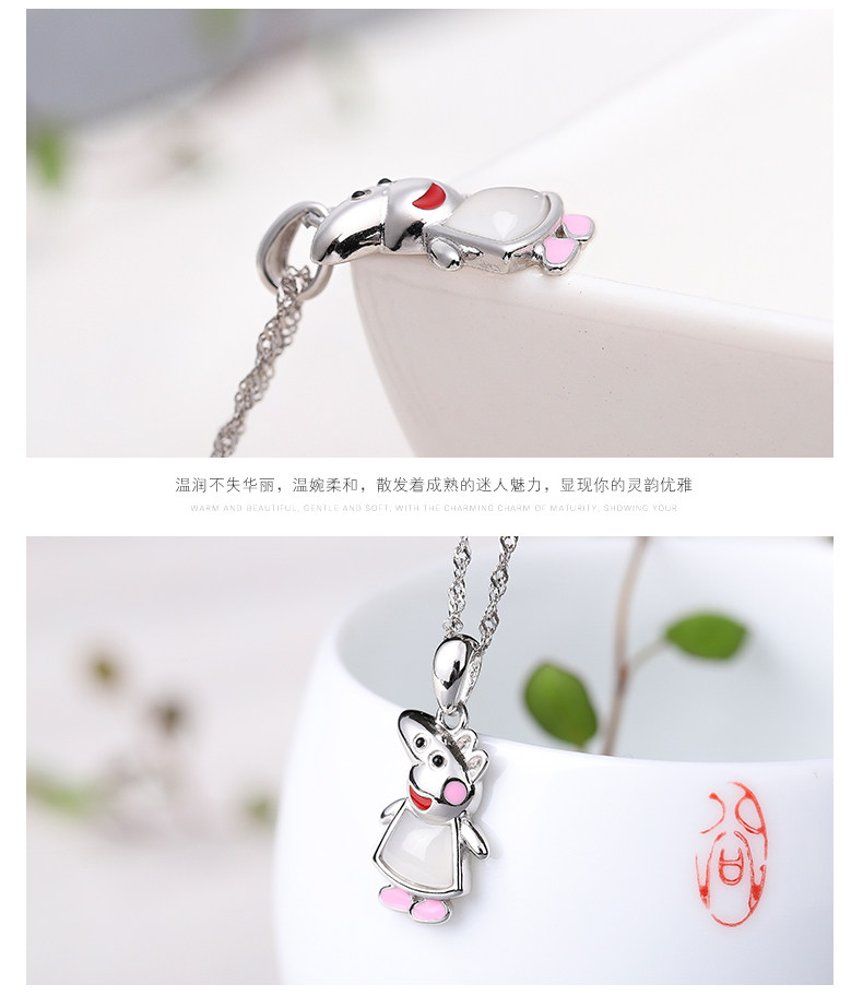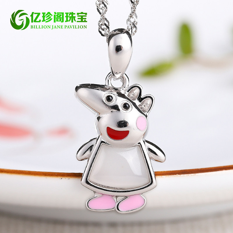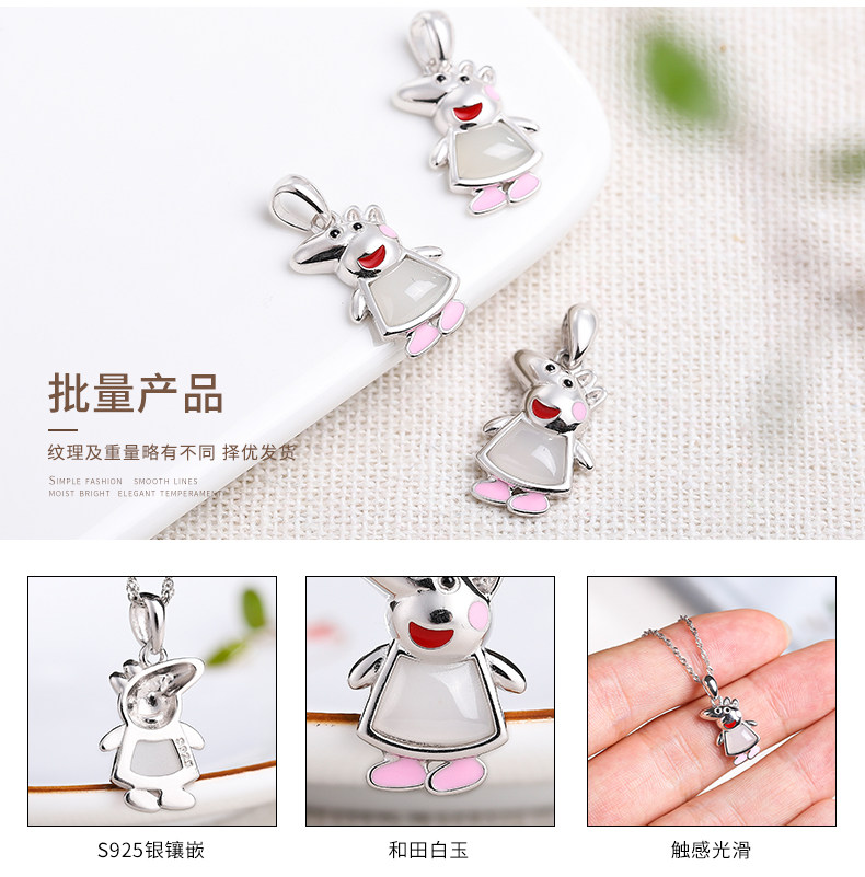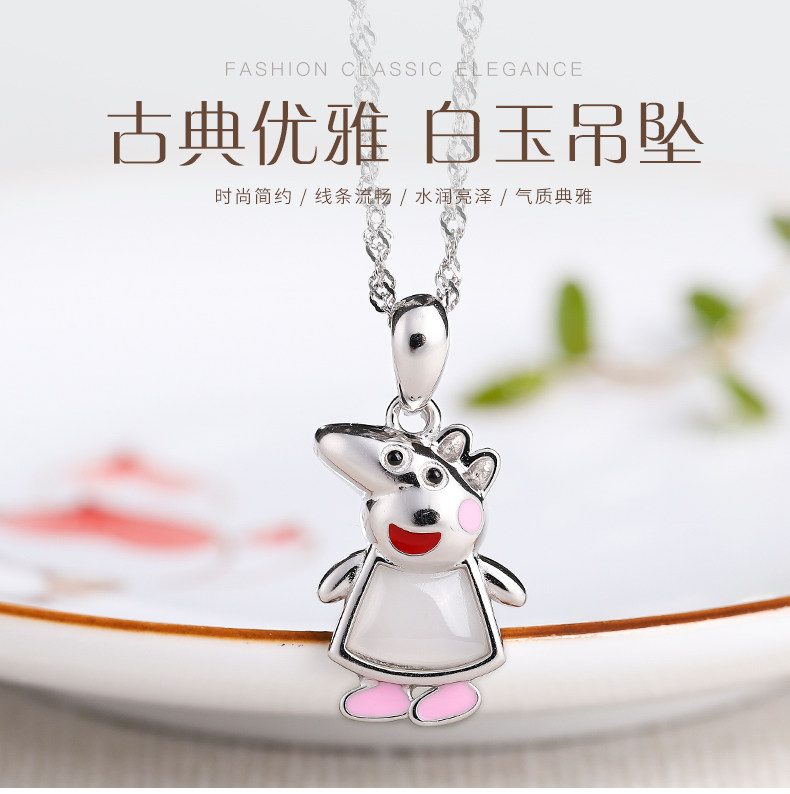 亿珍阁 Инкрустация камня из белого нефрита, подвеска, серебро 925 пробы