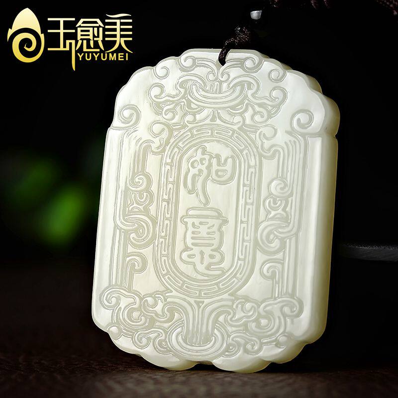 玉愈美 Двусторонная подвеска из нефрита, антикварный защитный амулет подходит для мужчин и женщин