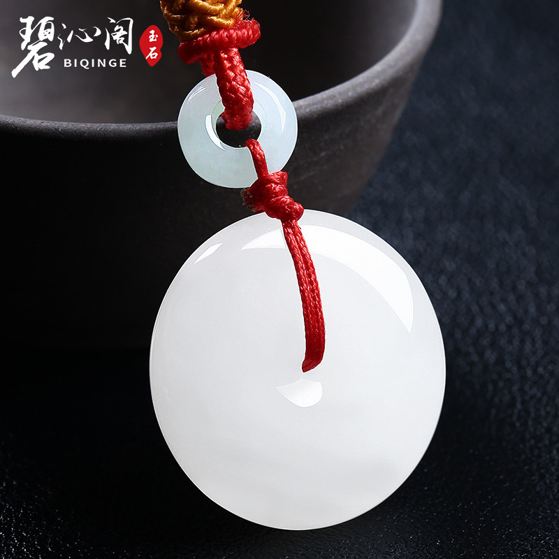 碧沁阁 Подвеска из нефрита, защитный амулет из белого нефрита, пряжка подходит для мужчин и женщин, ювелирное украшение, женский стиль