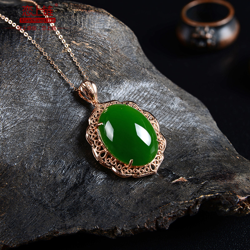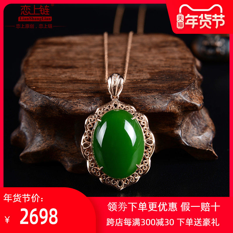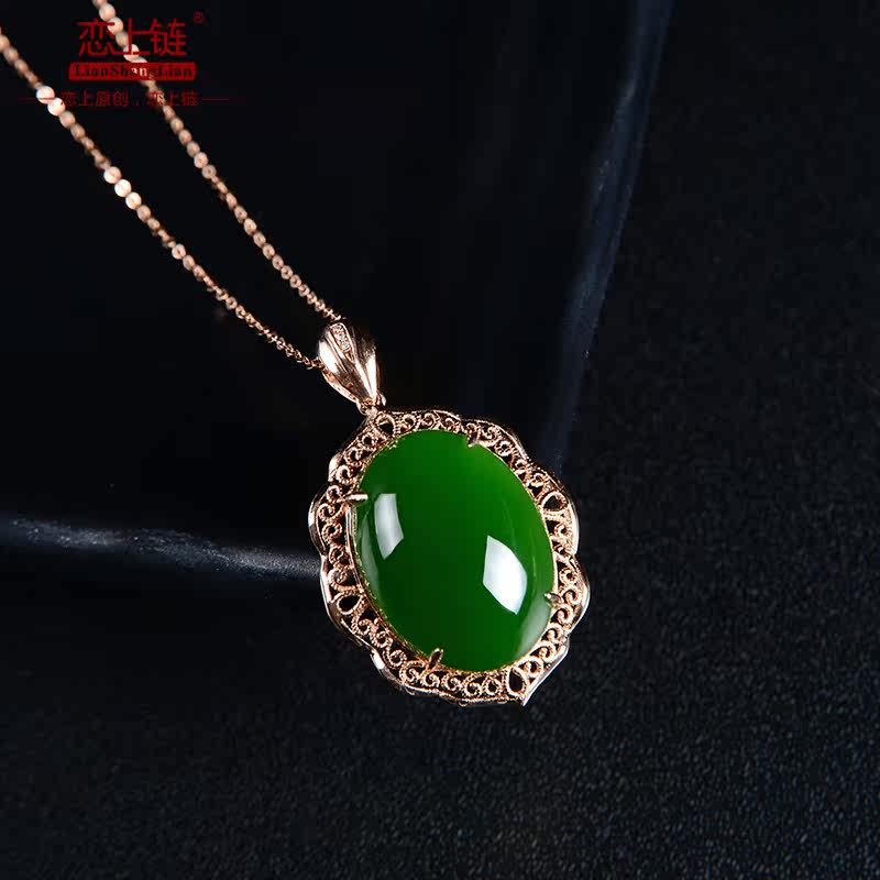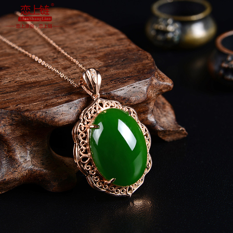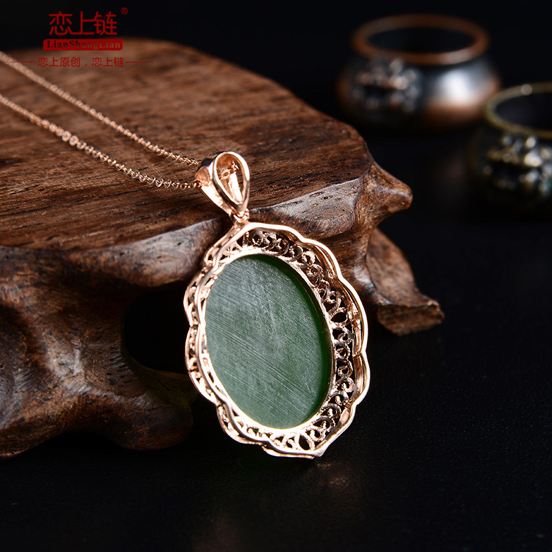 恋上链 Натуральная подвеска, яшма из нефрита, ожерелье, золото 18 карат, женский стиль