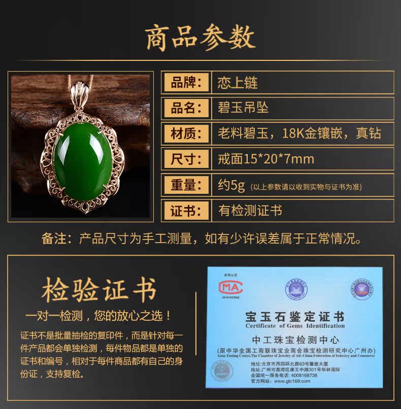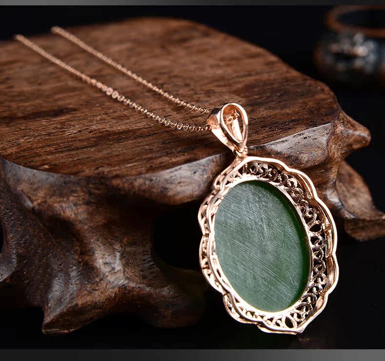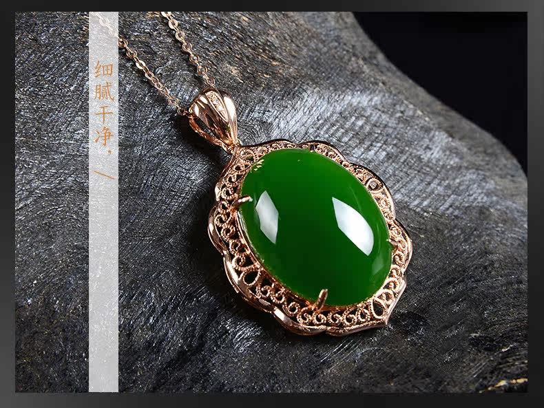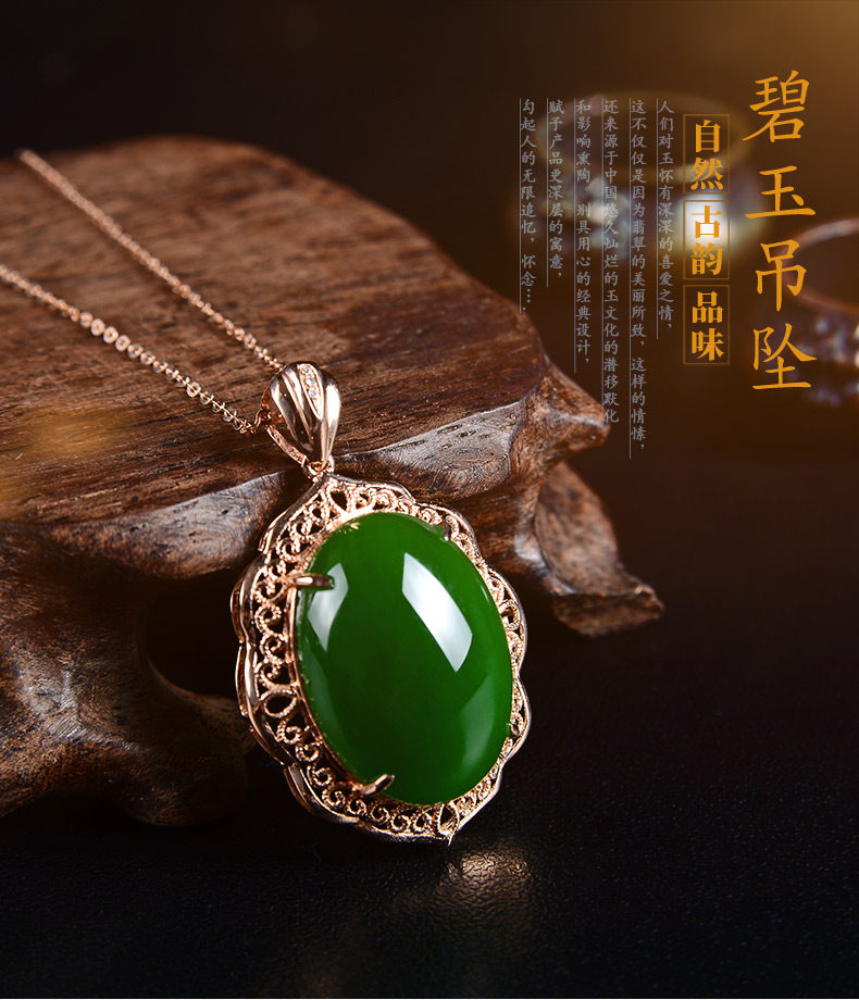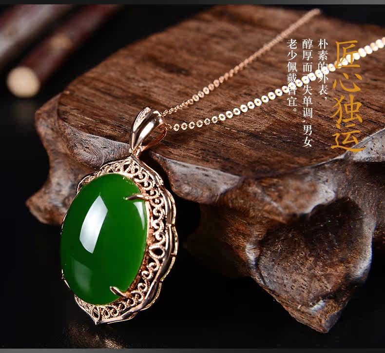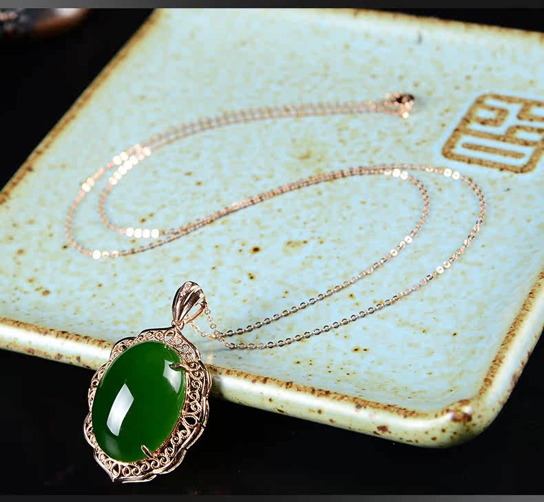 恋上链 Натуральная подвеска, яшма из нефрита, ожерелье, золото 18 карат, женский стиль