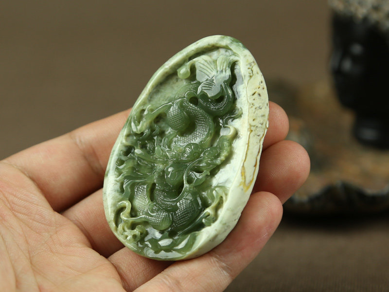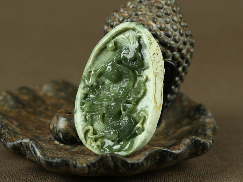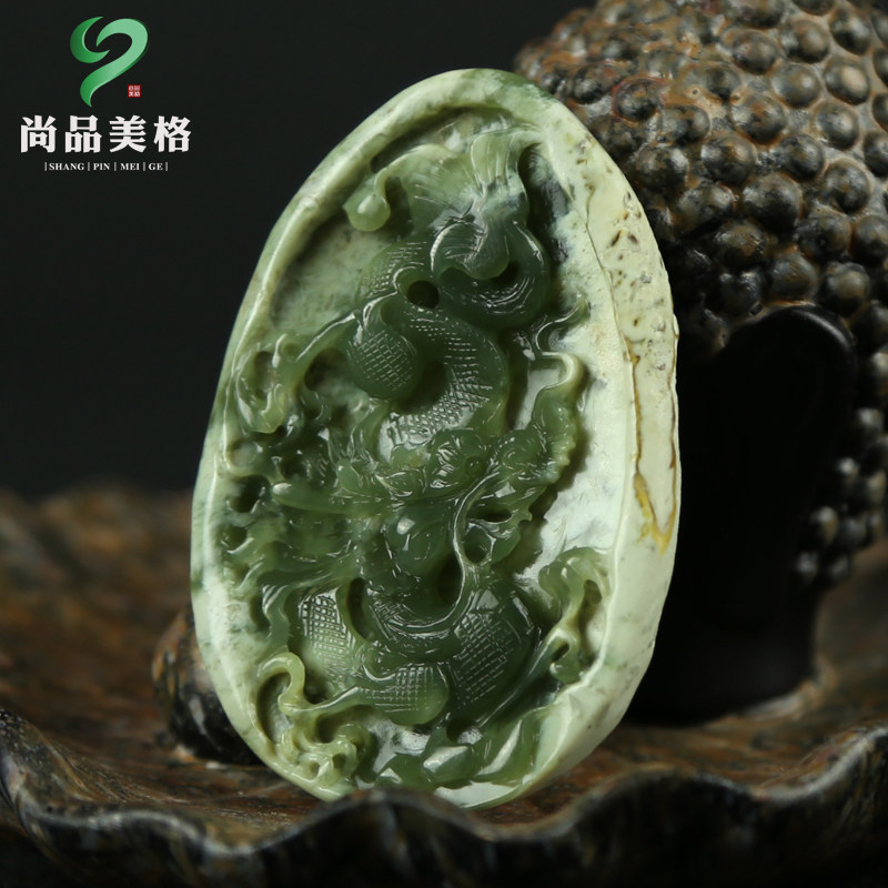 尚品美格 Проанализируйте деревянную и зеленую реку подвеску из белой кожи Два тонких материала, вырезанных в зодиака -драконе.