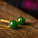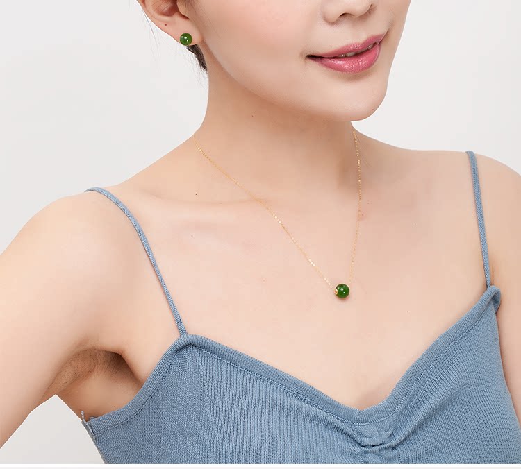 Натуральная яшма, цепочка до ключиц, инкрустация камня, подвеска, украшение-шарик, ожерелье, Россия, золото 18 карат