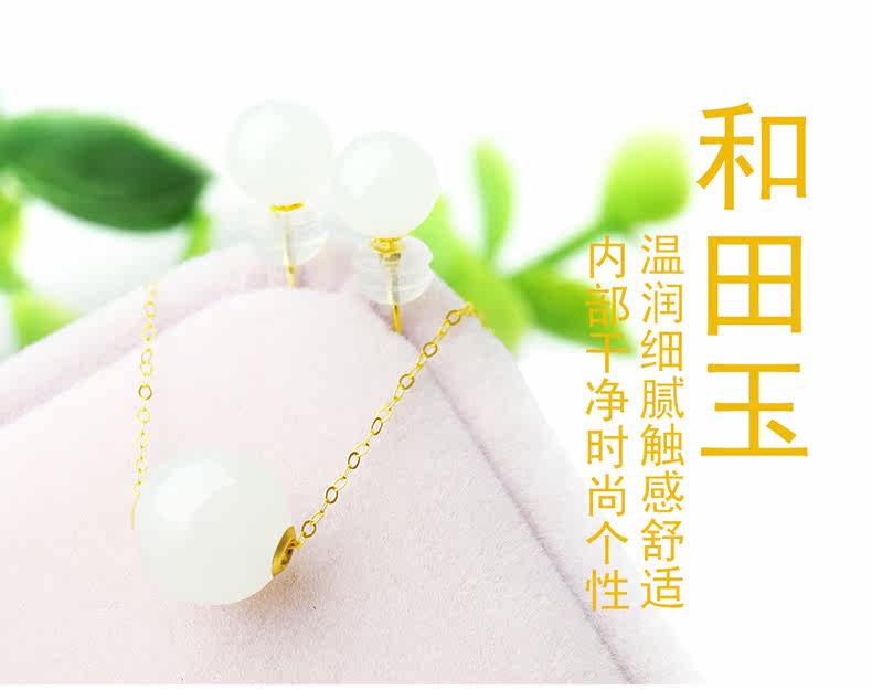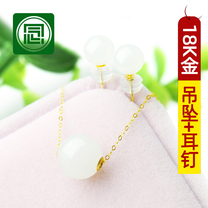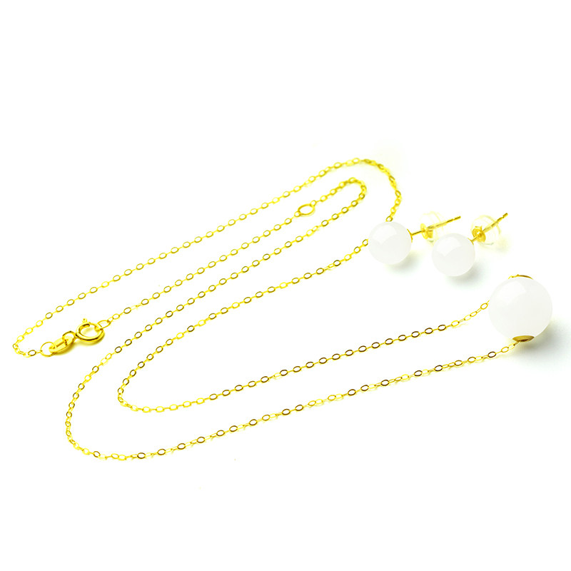 Ожерелье из нефрита, белая подвеска, украшение-шарик из белого нефрита, серьги, цепочка до ключиц, золотой комплект, женский стиль, 18 карат