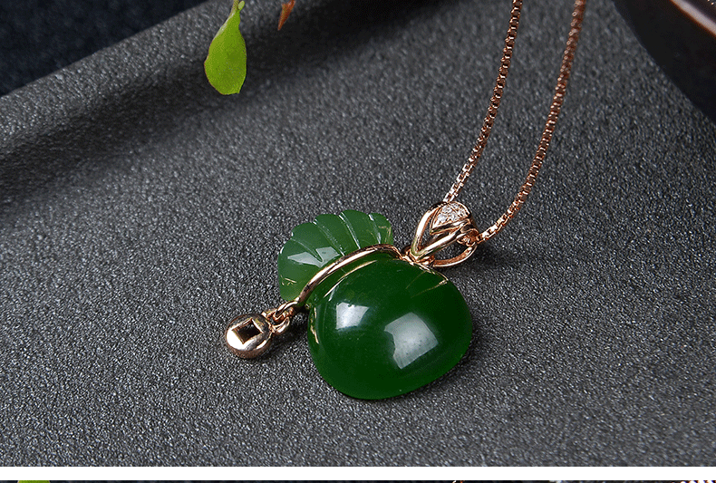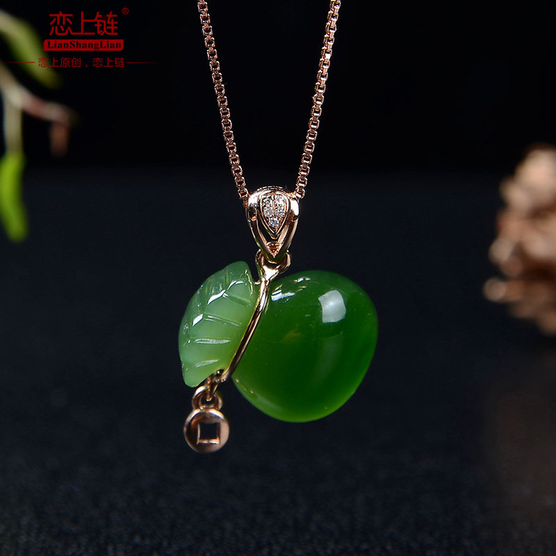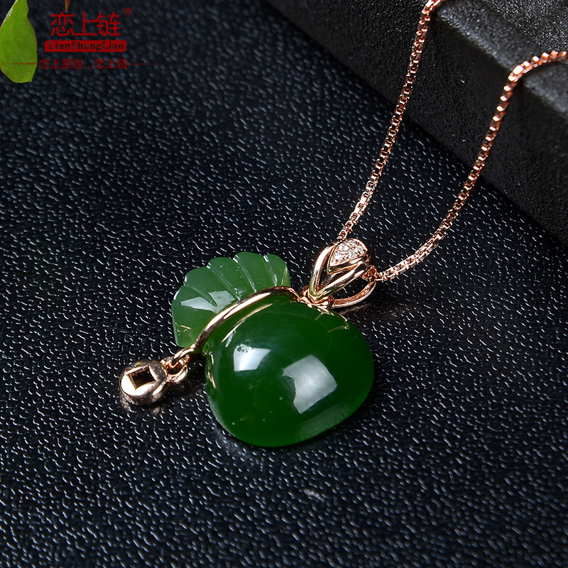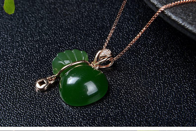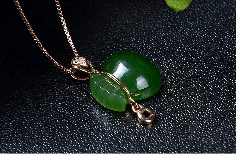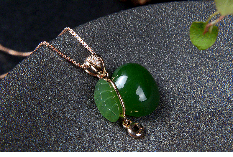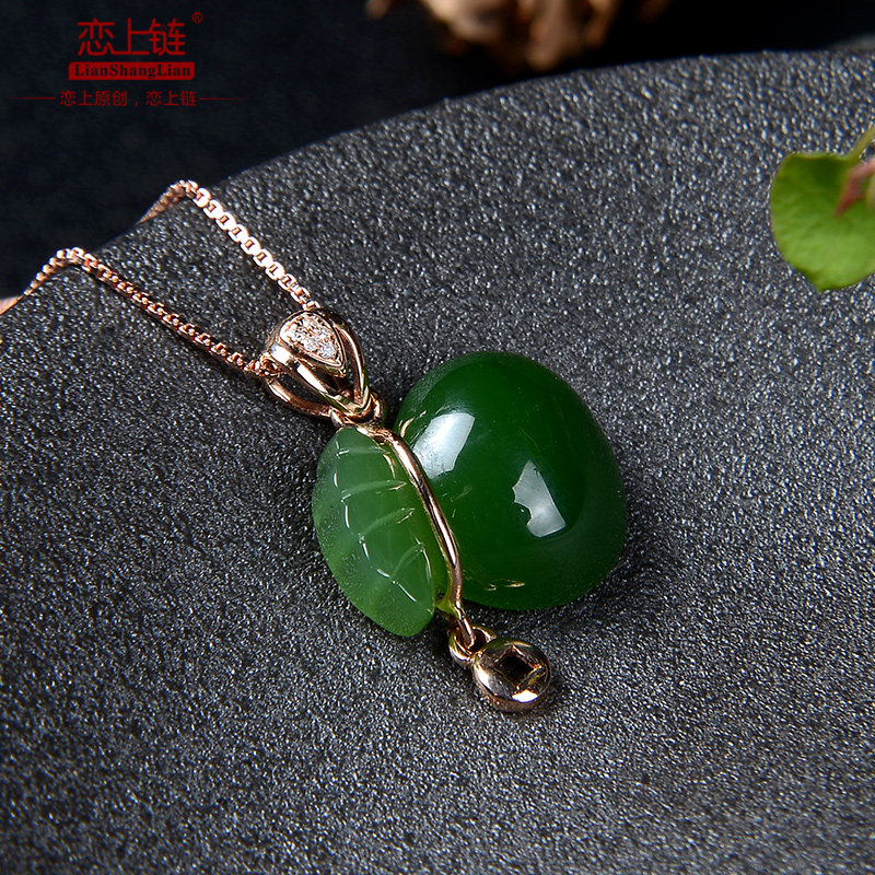 Яшма, натуральная подвеска из старинного материала из нефрита, золото 18 карат, женский стиль