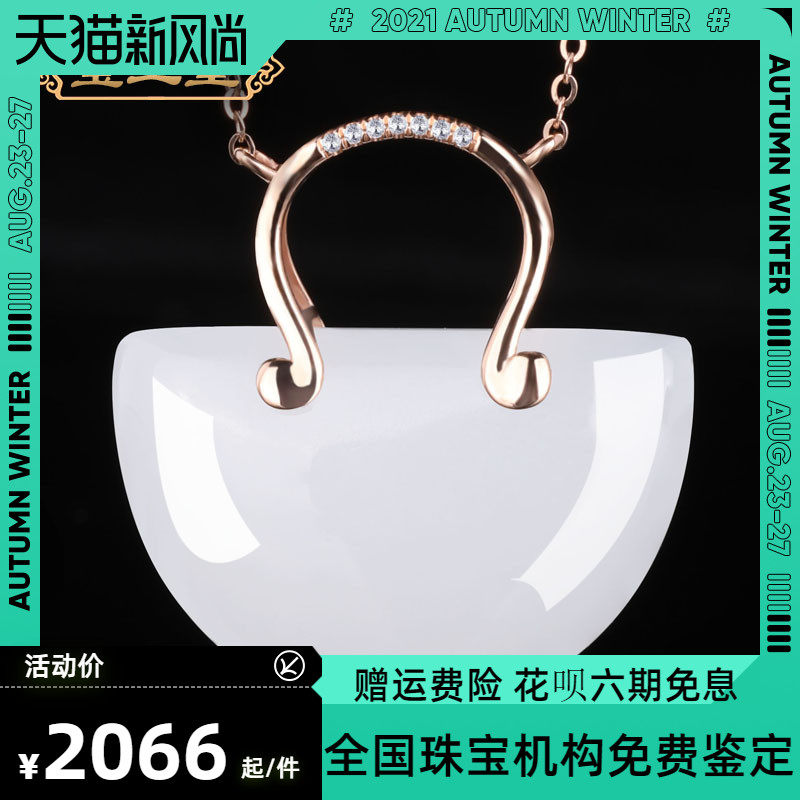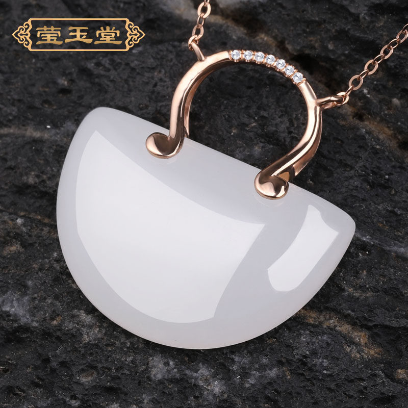 Золотой защитный амулет из округа Хотан из белого нефрита, подвеска, инкрустация камня из нефрита, 18 карат, розовое золото, женский стиль