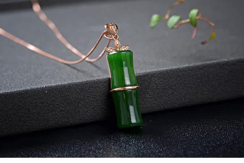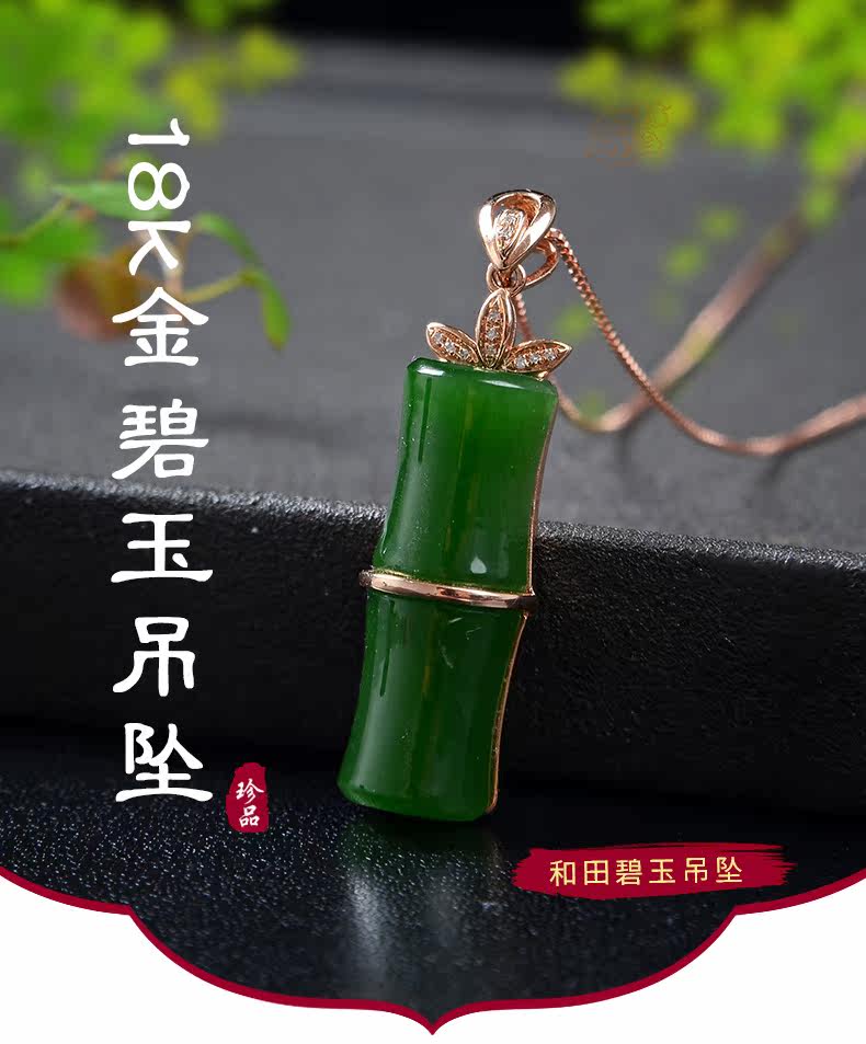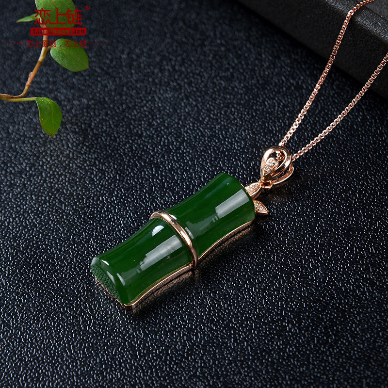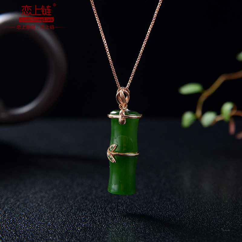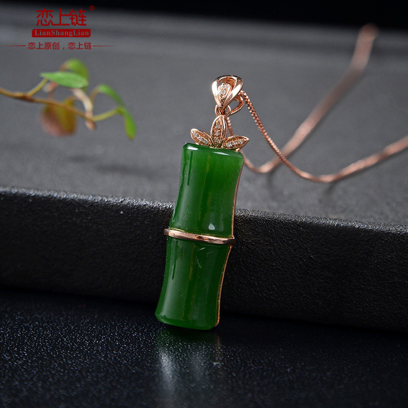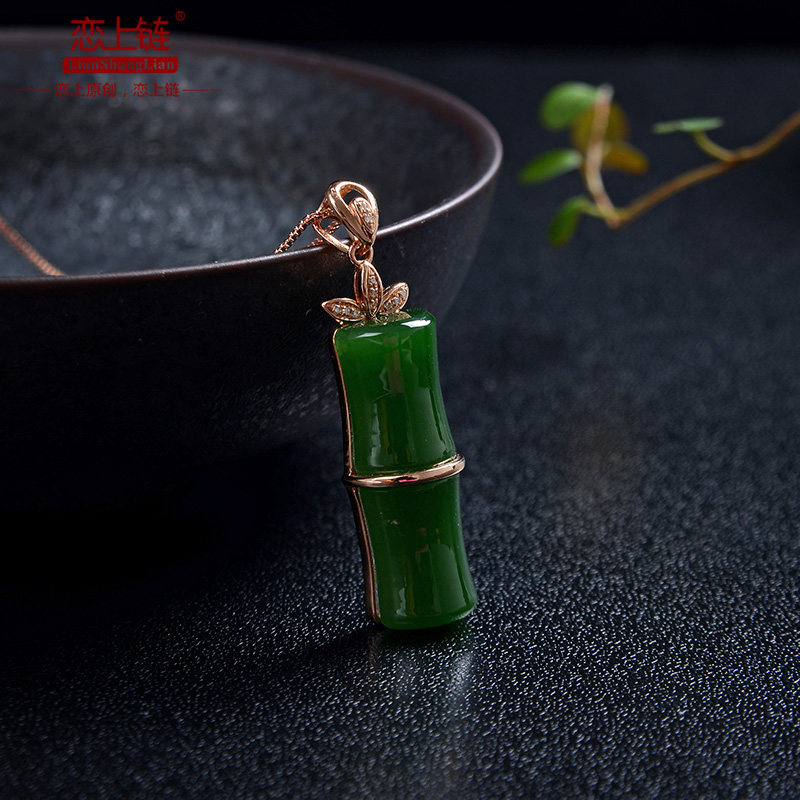 恋上链 Подвеска из нефрита, натуральная бамбуковая яшма, женский стиль, золото 750 пробы