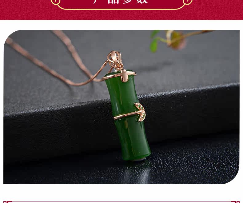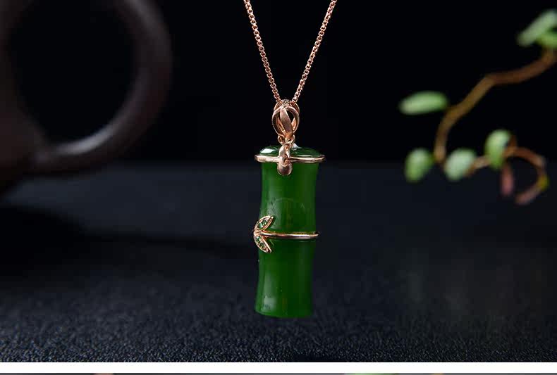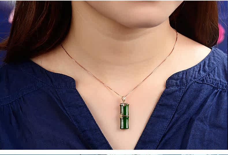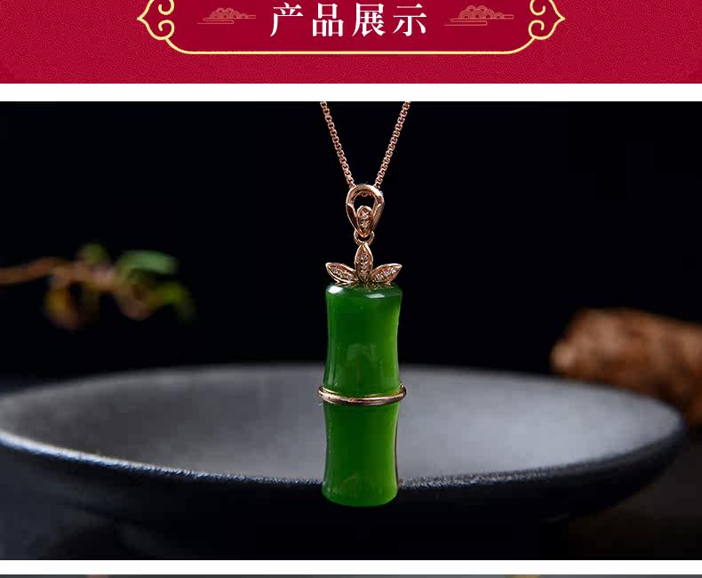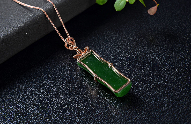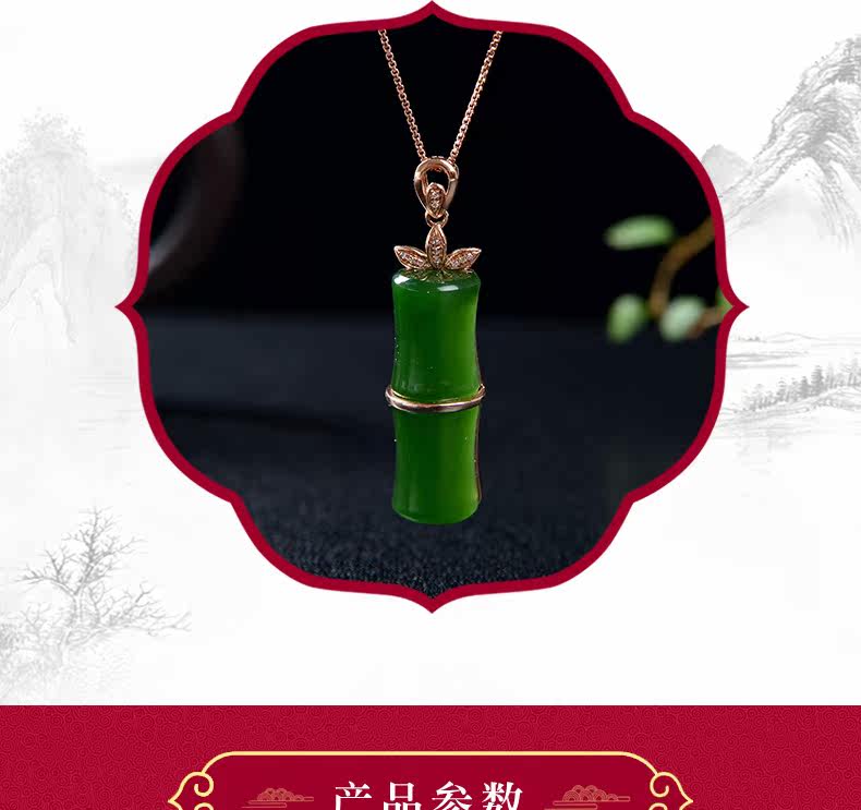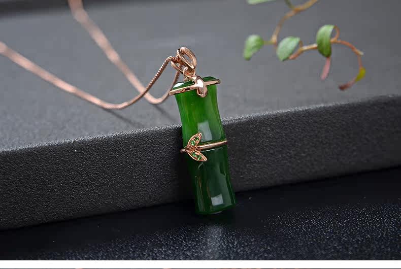 恋上链 Подвеска из нефрита, натуральная бамбуковая яшма, женский стиль, золото 750 пробы