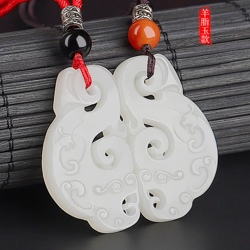 涵怡 Украшение в форме дракона из нефрита, подвеска для влюбленных из белого нефрита подходит для мужчин и женщин, дракон и феникс, женский стиль