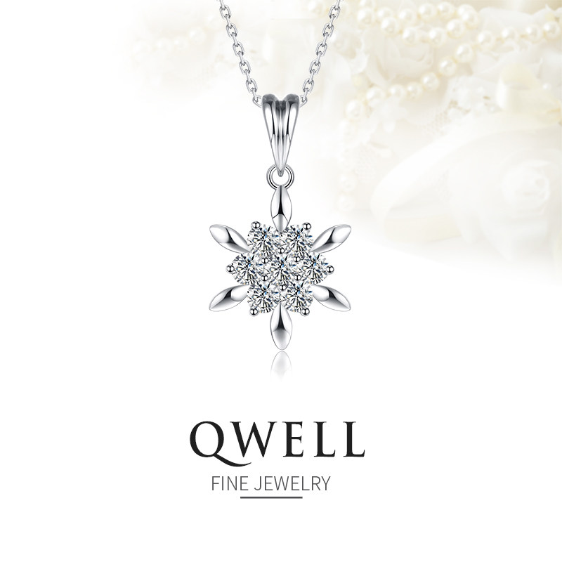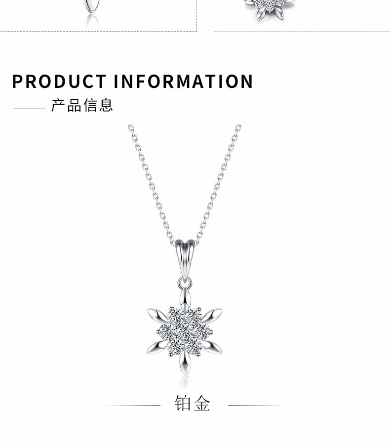 七薇 Платиновая бриллиантовая подвеска, платиновое ожерелье, платина 950 пробы, со снежинками, 40, (в наличии на складе)